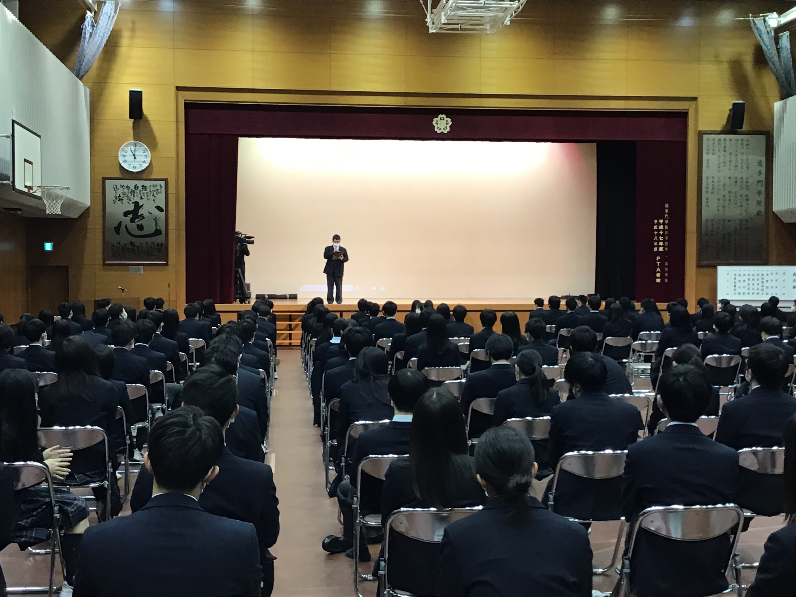 本日は卒業式の前日ということで、高校3年生は卒業式の段取りの確認を行いました。 その後、高校生徒会役員による歓送会が実施され、卒業生へのメッセージや記念品贈呈などが行われました。 本年度の卒業式は、他の学年は参加せずに実施することになりましたので、卒業に向けてのメッセージを後輩から伝える機会が設けられたことで、生徒たちも嬉しそうにしていました。