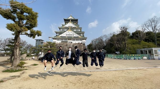 本日、修学旅行事前学習の一環として、大坂城探究ツアーと大縄大会を行いました。班行動に慣れること、教員の手から離れて自分達で協力しあって行動すること、時間とモラルを守って行動することを目的に実施しました。その目的を理解した行動をとるなかで、全力で楽しむ姿が印象的でした。今年度の数少ない行事の1つでもあり、教員も一緒に楽しむことができた1日となりました。高校1年生も残りわずかですが、1日1日を大切に過ごして、悔いなく終えてほしいと思います。