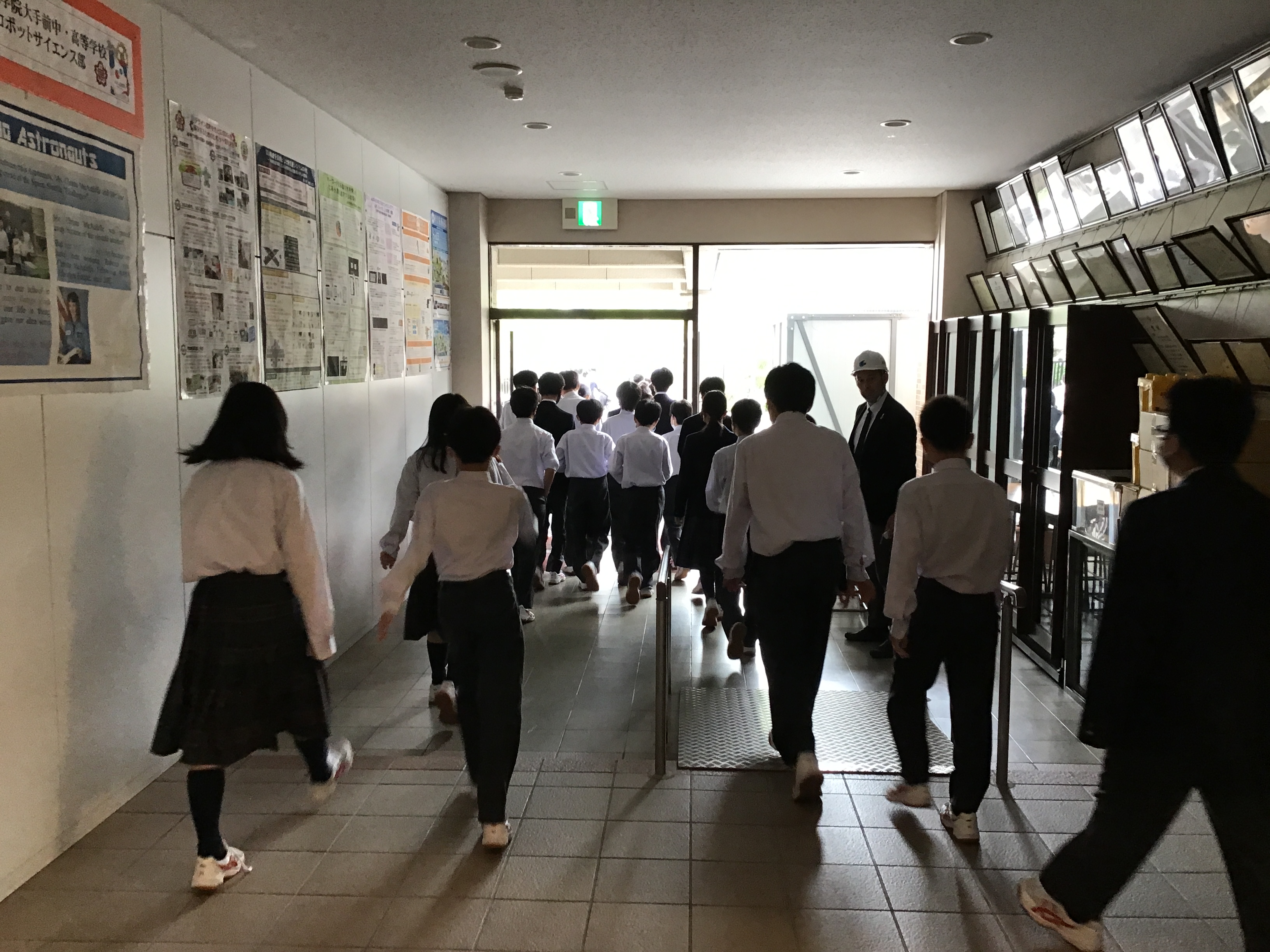 本校の防災計画にある「誰一人として命を落とさない」という理念のもと、本日、中学1年生と高校1年生は震災を想定した訓練を、中学2・3年生と高校2・3年生には、防災教育を行いました。
