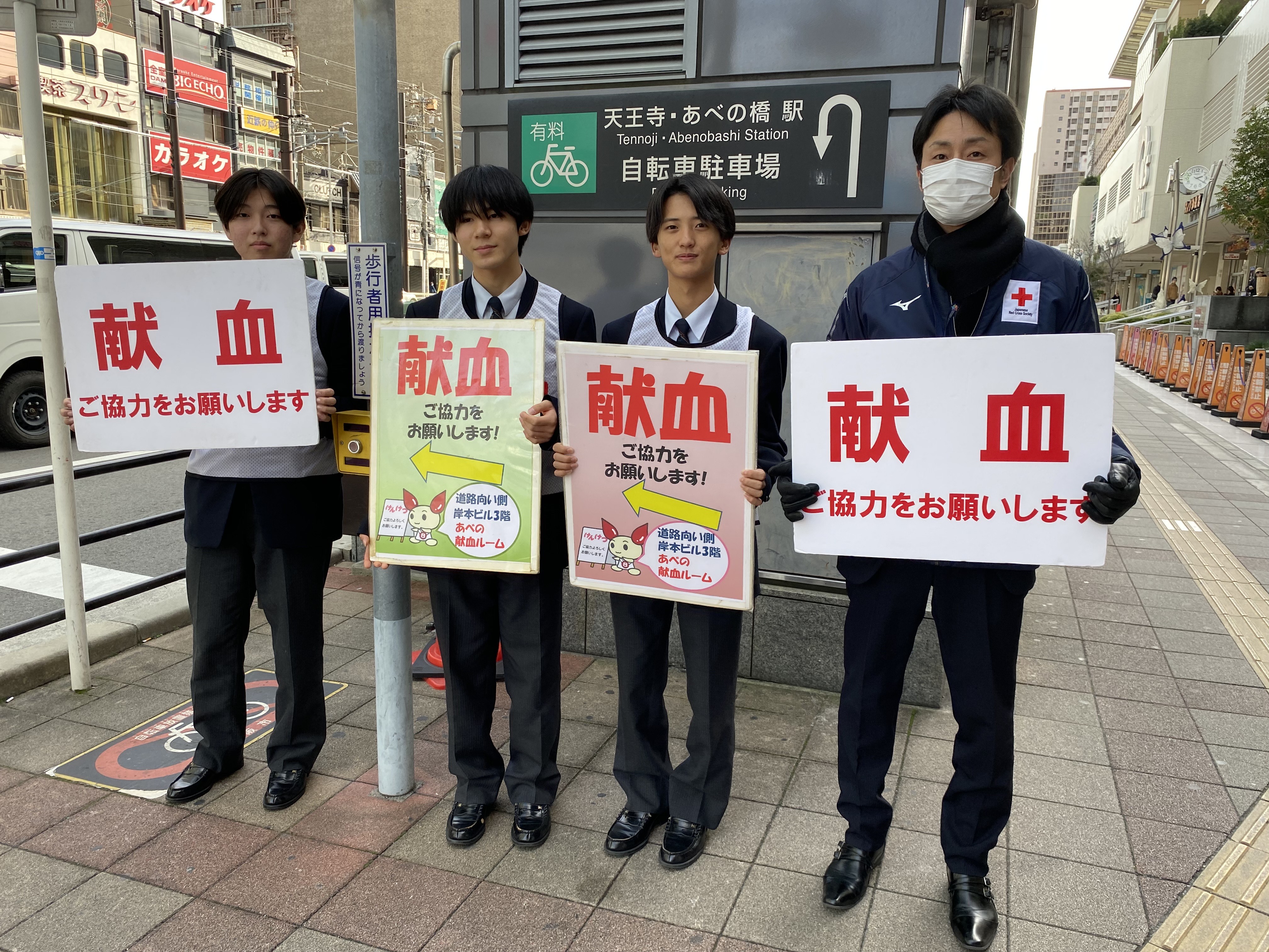 日本赤十字社大阪支部主催「献血呼びかけボランティア」に本校の高校1年生の生徒が有志で参加してくれました。