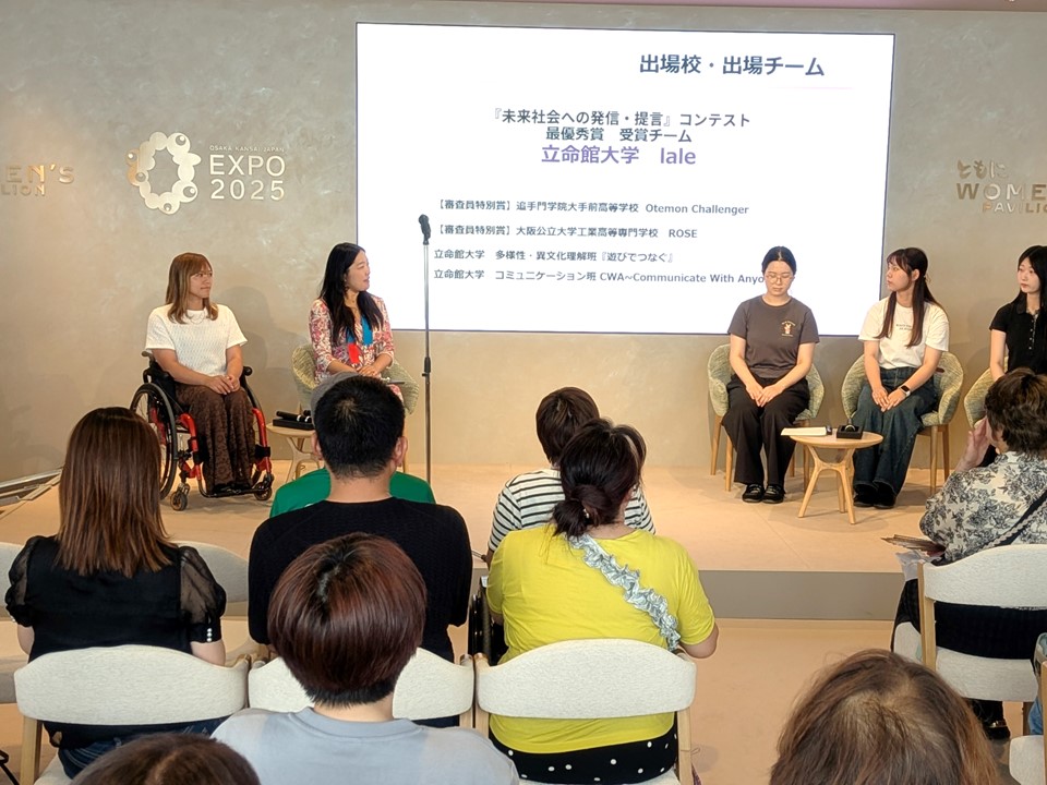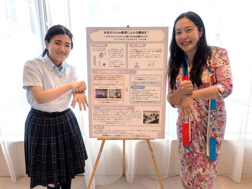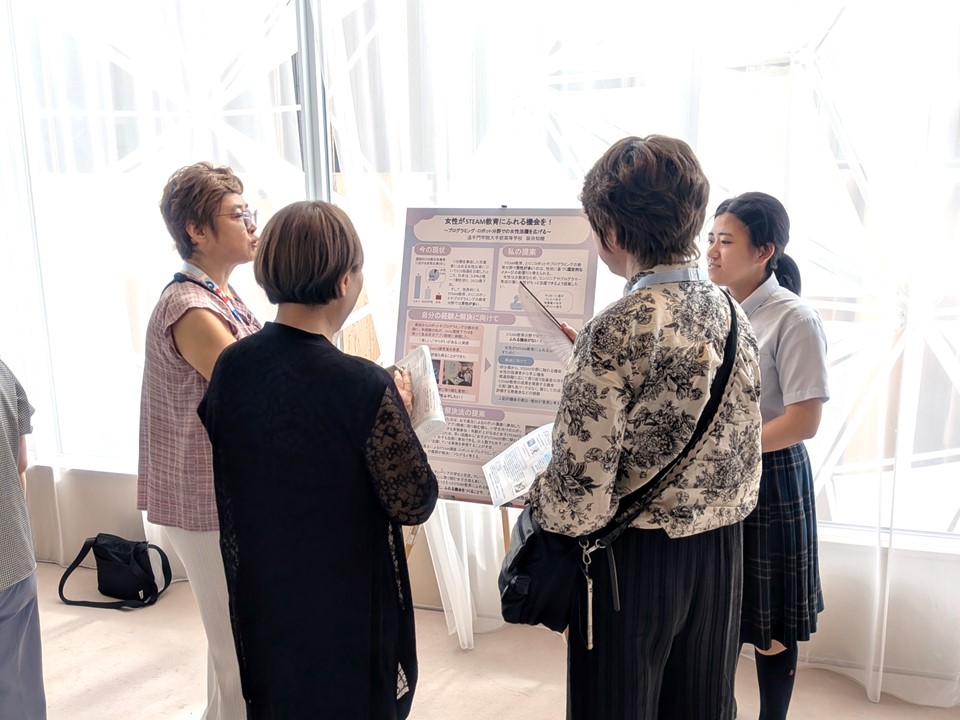 9月28日、関西万博ウーマンズパビリオンにおいて「ドーンdeキラリフェスティバル in 関西万博」が開催されました。万博プロデューサーの中島さち子さんと学校に隣接するドーンセンターの共同企画された本イベントは、女性活躍推進を目的とします。そこで、IT分野で活躍する女性研究者が、とくに日本では少ないことから、女子児童・女子生徒がもっとSTEAM教育に触れる機会を増やすことの重要性をポスターにまとめ、発表しました。多くの来場者の方々に耳を傾けて頂き、たくさんの共感・称賛の言葉を受けることができました。素晴らしい発表の場、発信の機会をいただき、感謝の気持ちでいっぱいです。