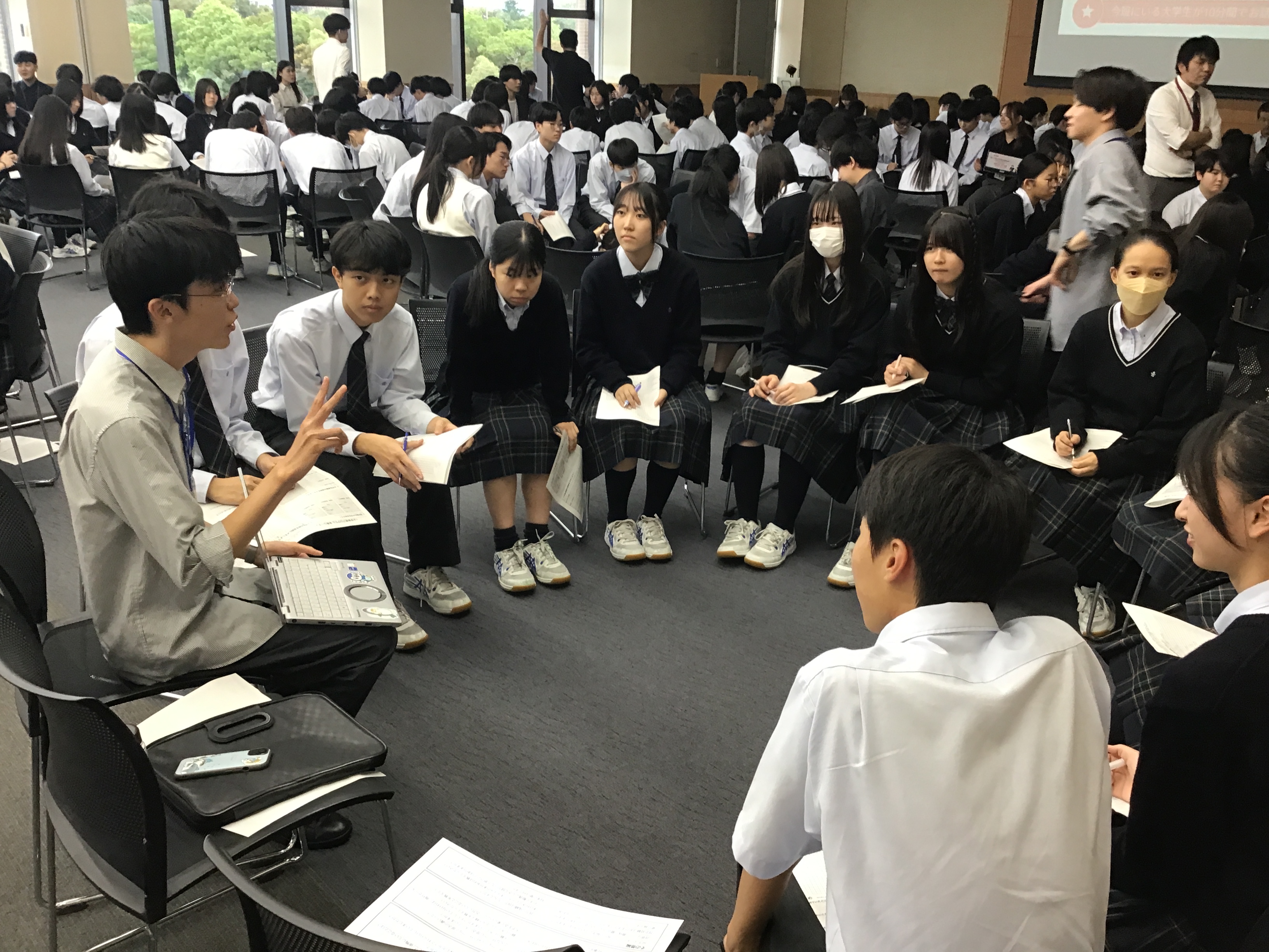 本日、大学生を招いて、高校生との進路に関する座談会が行われました。