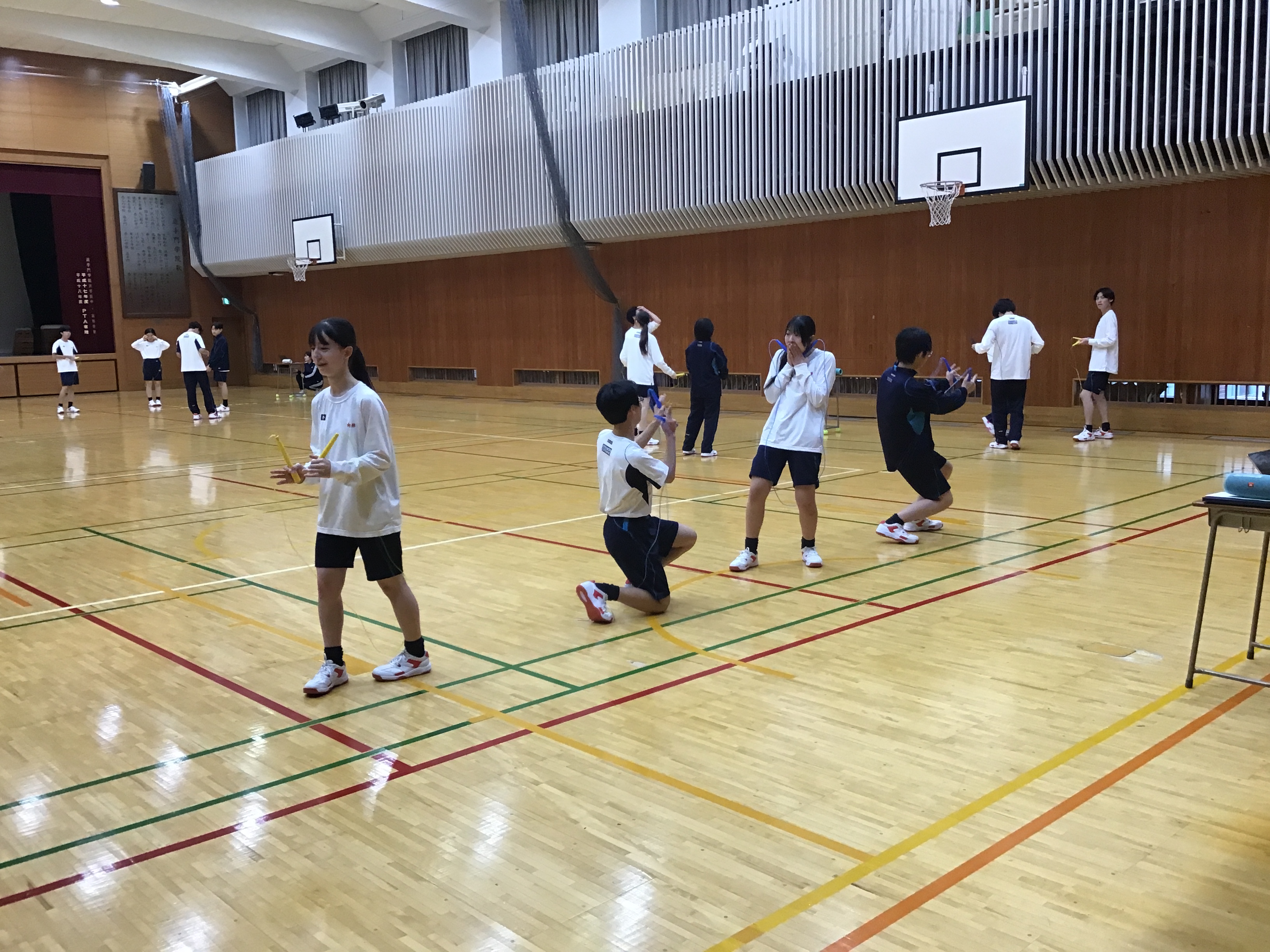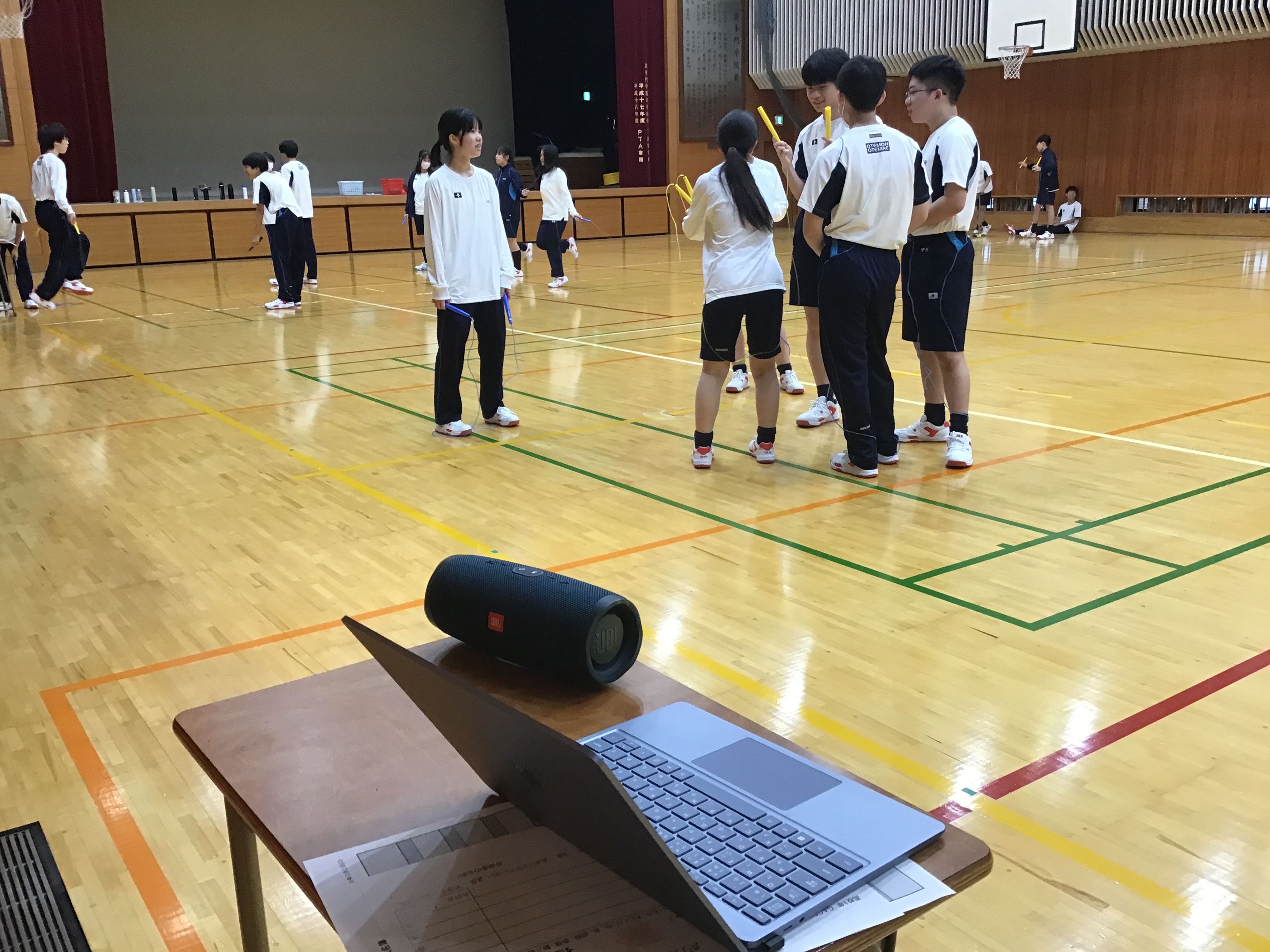 各チームに1つ音楽を流すJBLを渡して、体育館全体が曲が流れ、活気のある時間となりました。