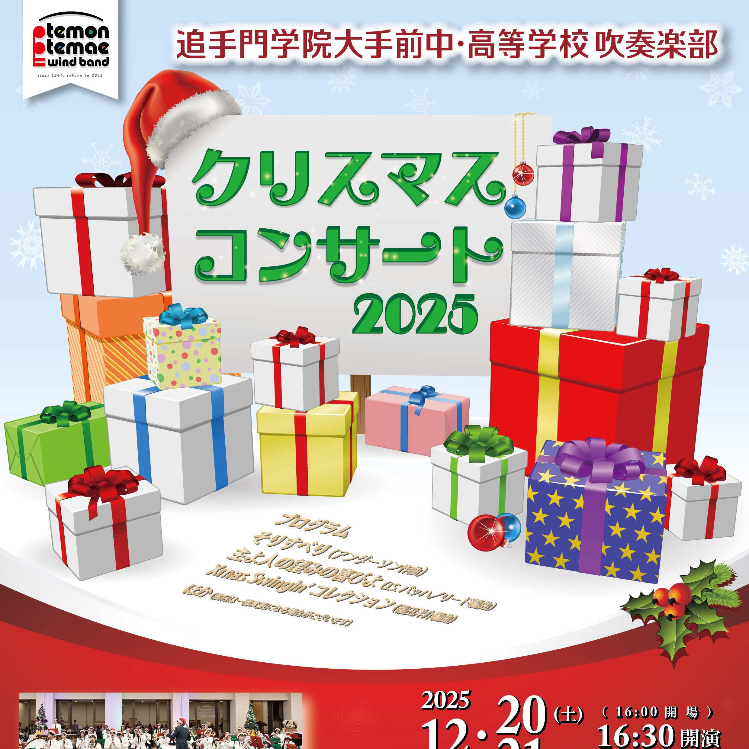今年もクリスマスコンサートを開催いたします。皆様お誘いあわせのうえ、是非ご来場くださいますようお願い申し上げます。