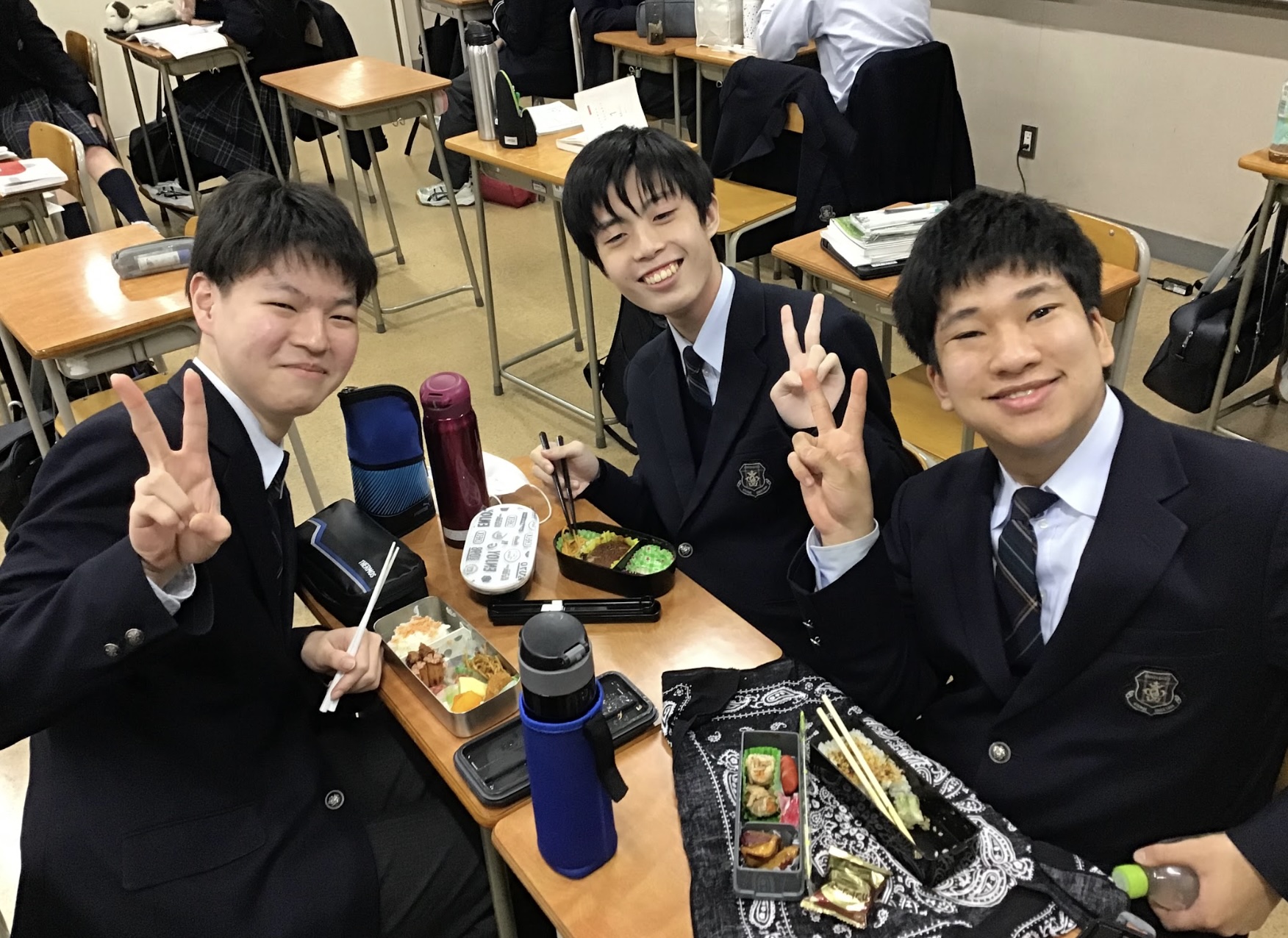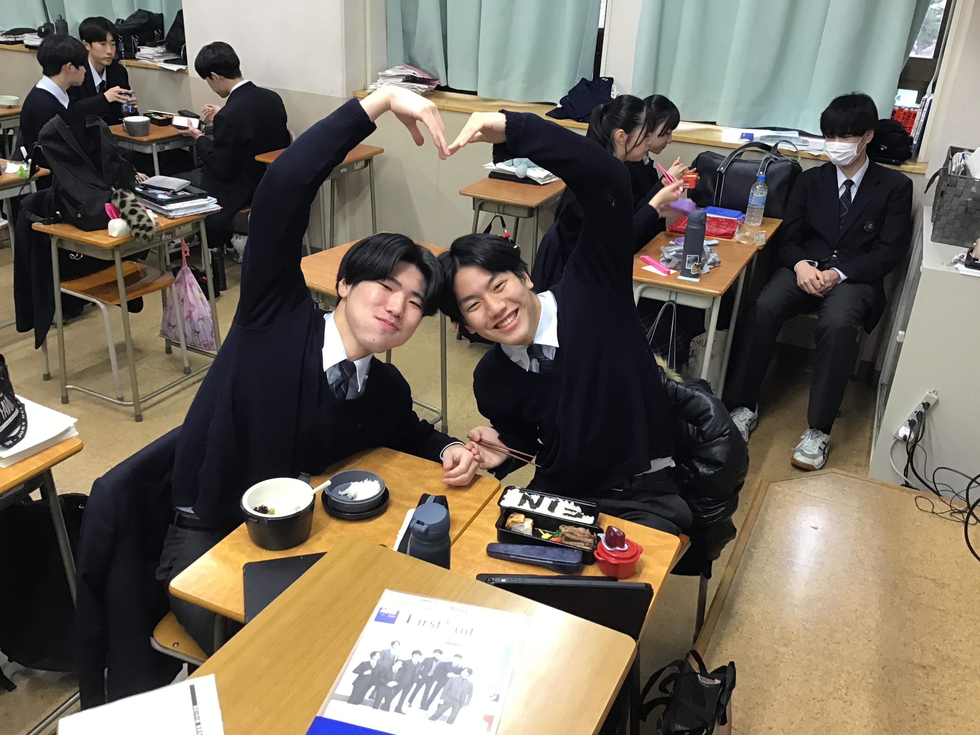 高校3年生は2学期の期末考査後は、進路によって登校がまちまちになります。3学期にも登校しますが午前中で終了するので、全員で揃っての昼食は本日が最後でした。