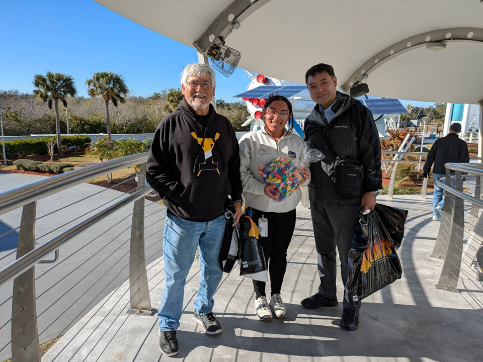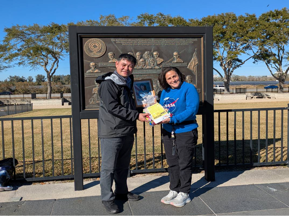 1986年1月28日にスペースシャトルチャレンジャーが事故を起こし、7名の宇宙飛行士が命を落としました。その1人がChrista McAuliffe宇宙飛行士です。彼女は初の民間人宇宙飛行士として注目されましたが、悲劇のヒロインに。事故後、彼女の功績を讃えるためにNASAの教育基金が立ち上がり、2003年、アメリカアイオワ州のウエストブランチ中学校とともに、その基金で火星探査プロジェクトをはじめました。これが私たちが取り組むロボットサイエンス教育をはじめたきっかけです。ゆえに彼女の存在なしで、今の私たちの活動を語ることはできません。ちょうど40年という節目の命日に、ウエストブランチ中学校のHector Ibarra 先生とともに、フロリダにあるケネディ宇宙センターのメモリアルパークを訪れ、生徒たちがつくった追悼の折り鶴を捧げてきました。私たちは彼女の遺志を受け継いでいます。(ロボットサイエンス部顧問 福田)
