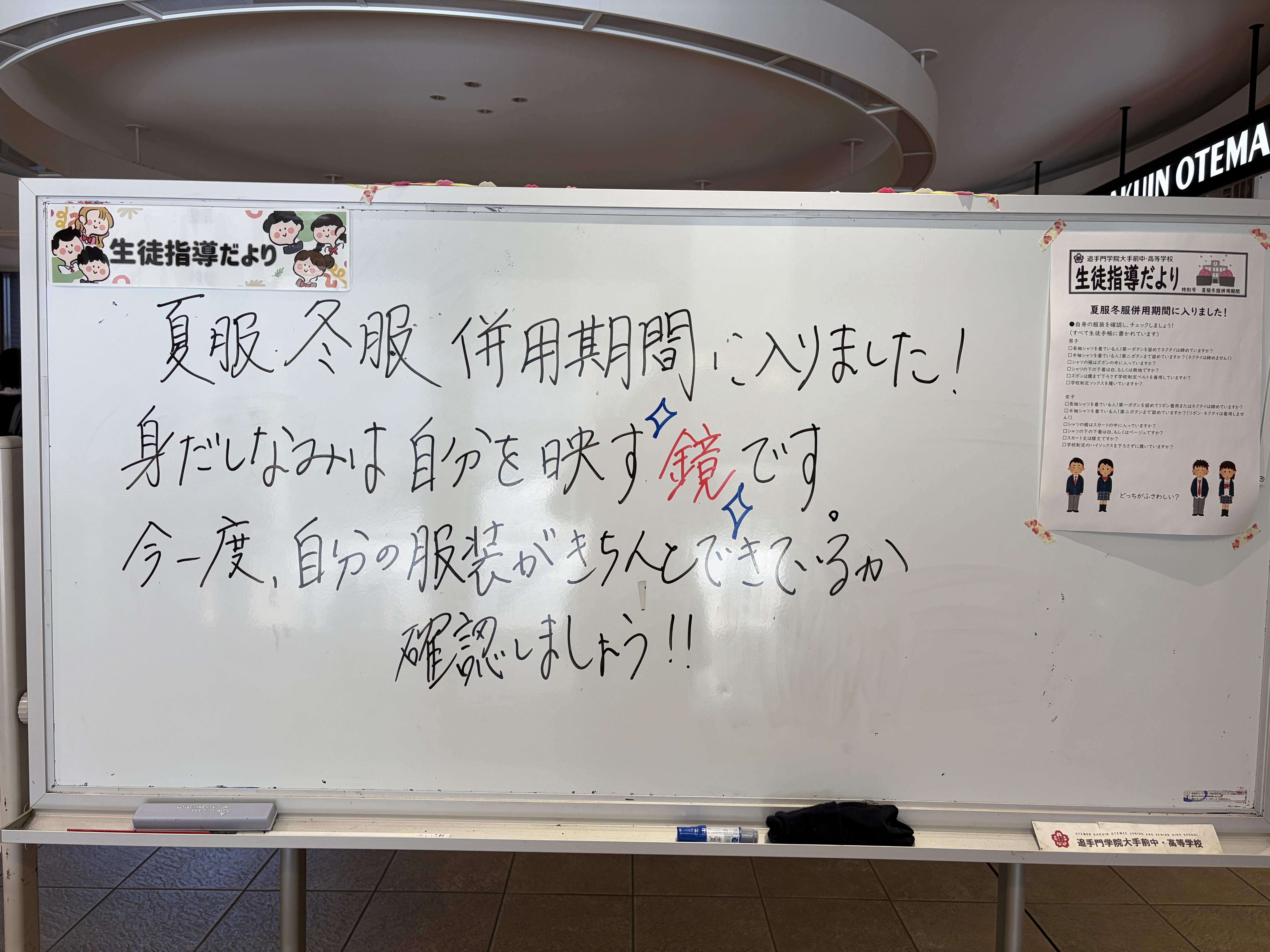 日中の暑さが予想されることから、昨日より夏服冬服併用期間となりました。