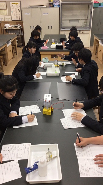 電気を通すだけで水から気体が発生する様子を観察したり、発生した気体の性質を調べ、発生した気体が何なのかをみんなで考えました。
