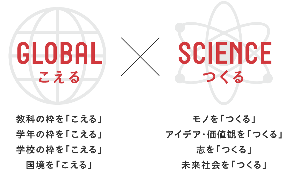 教科や年齢、言葉、文化の違いなど、さまざまな枠を「こえる」学びと、豊かなアイデアや発想、未来への志を「つくる」学びを通して、変化し続ける社会に柔軟に対応できる次世代のリーダーを育てます。