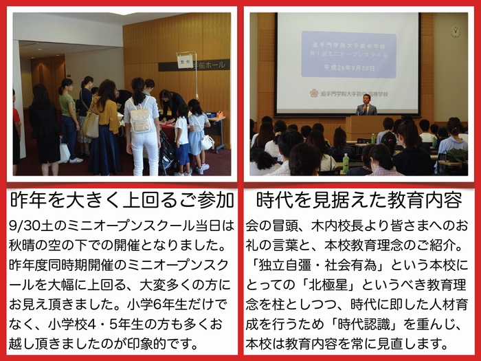 ■中学入試■ 9/30土 第1回中学ミニオープンスクールを開催 昨年を大きく上回る参加者数!