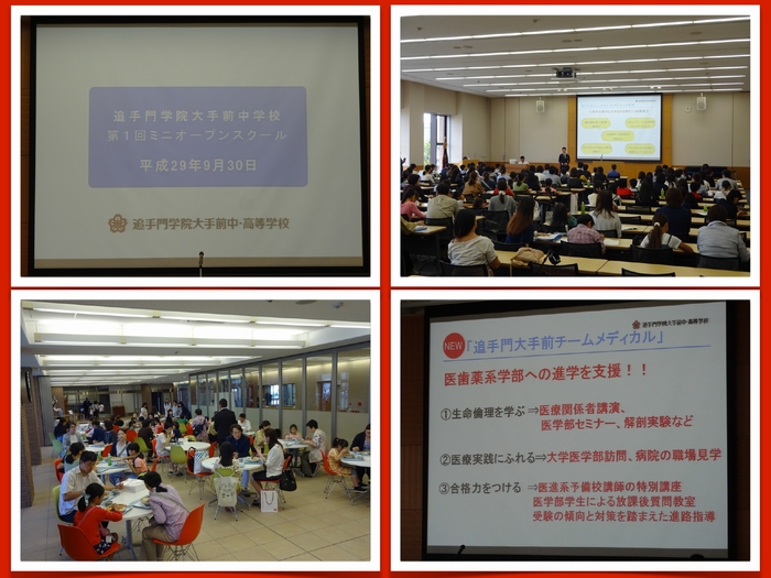 去る9/30土に、追手門学院大手前中学校をより詳しく知っていただくため、受験生・保護者の方向けの「第1回中学ミニオープンスクール」を開催いたしました。ご参加いただきました児童・保護者の皆さんに厚くお礼を申し上げます。今回の入試説明会の内容が、進学先として本校をご選択になられる際の一助となれば幸いです。