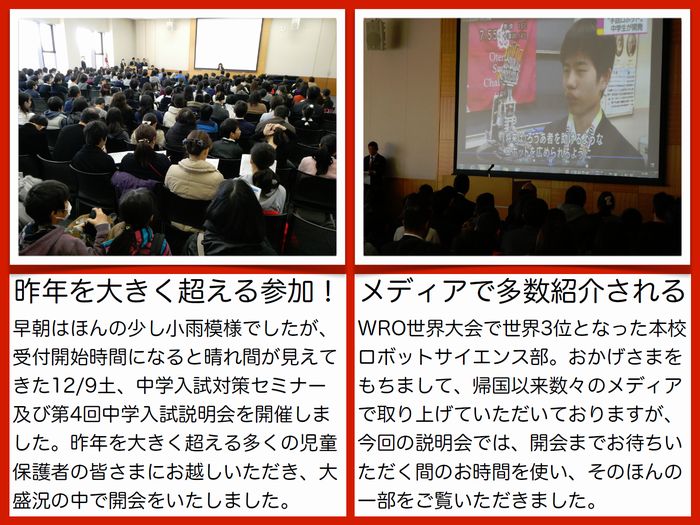 ■中学入試■ 12/9土 中学入試対策セミナー/第4回中学入試説明会 開催!昨年を大きく超える参加!
