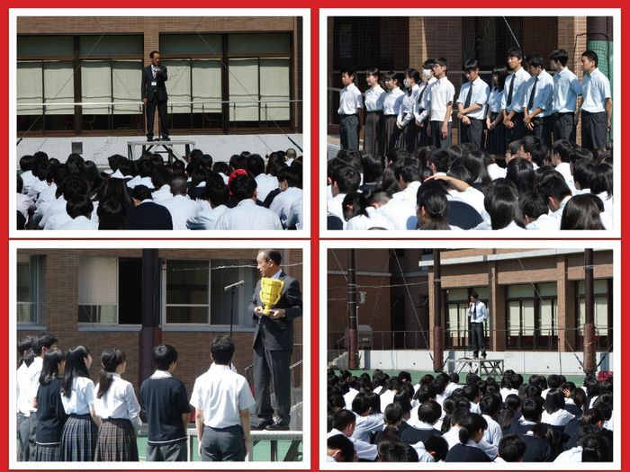6/4月の1限目、中学・高校の全校生徒が集まり、全体朝礼を行いました。