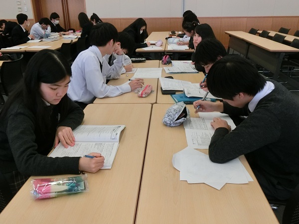 2学期期末考査まであと4日となりました。70期が一丸となって、考査に臨むために、大手前ホールにて勉彊会を行いました。授業の復習や問題集のわからないところを班のメンバーで学び合うことで、自分の課題点を確認する良い時間となりました。「受験は団体戦」この言葉を今回の期末考査でも生かし、70期全員で意識を高めあいながら、頑張っていきます。