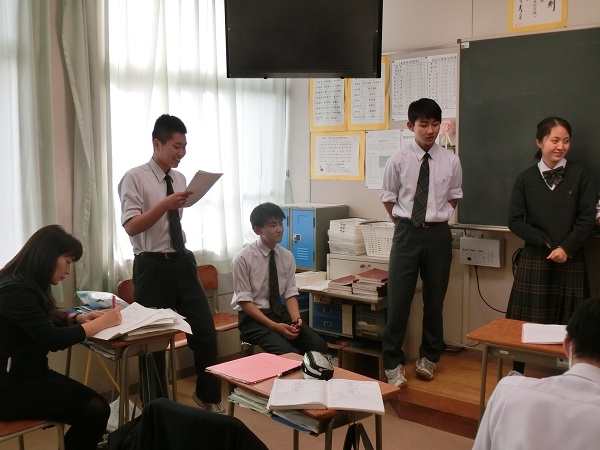 「社会理解」で「主権者教育」をテーマにした学習を行ったクラスは、そのあとに「表現コミュニケーション」で「投票率を上げるためにはどのようにすればよいか」を考え、ディベート実践を行いました。日本での投票率の低さやその問題点と原因をグループ学習で学んだあとに、それぞれの班で効果的と考えるアイデアを提案します。そのアイデアをもとに、ディベートを行います。2学期の前半は4組、後半は1組で授業を展開しました。
