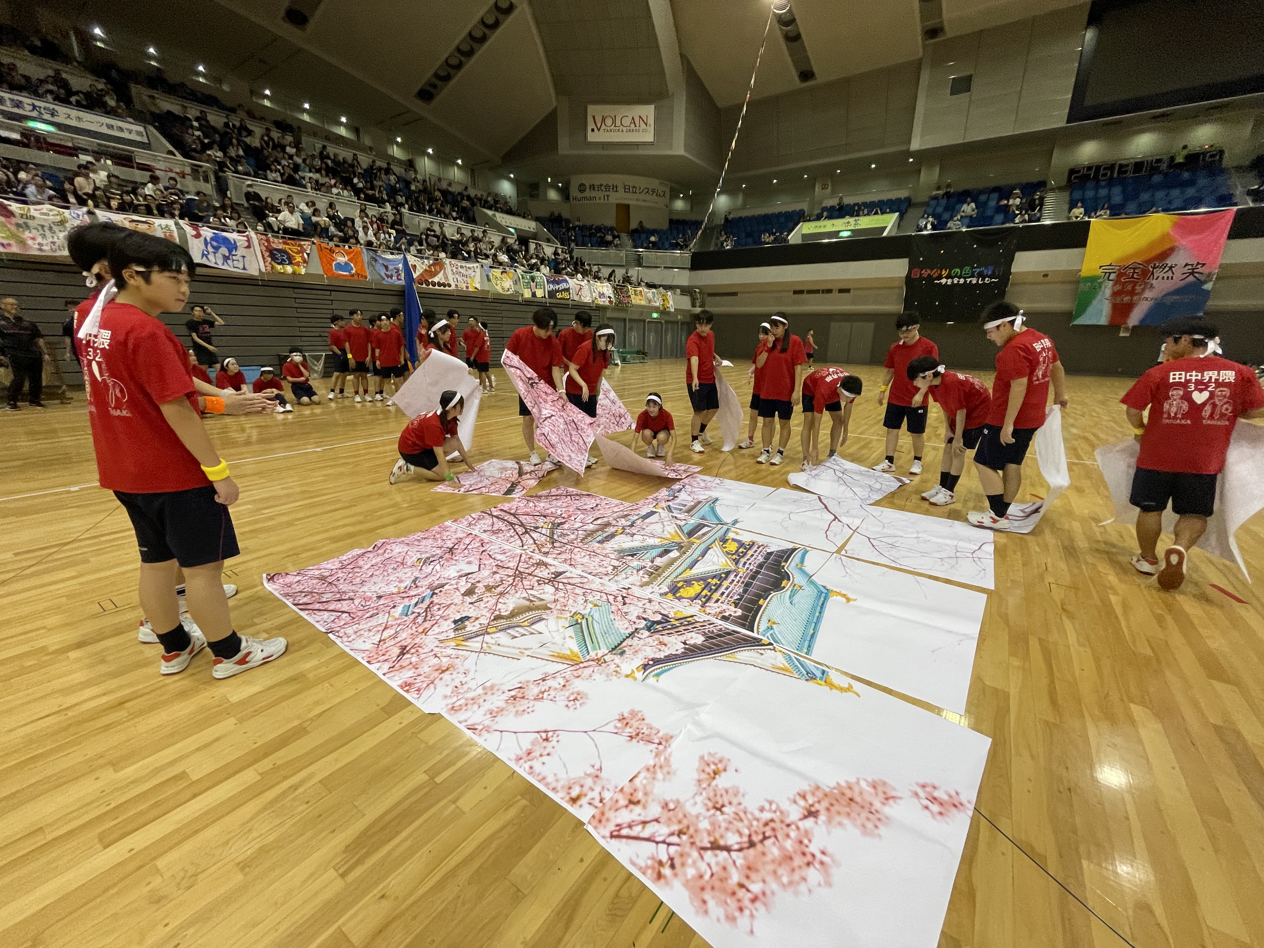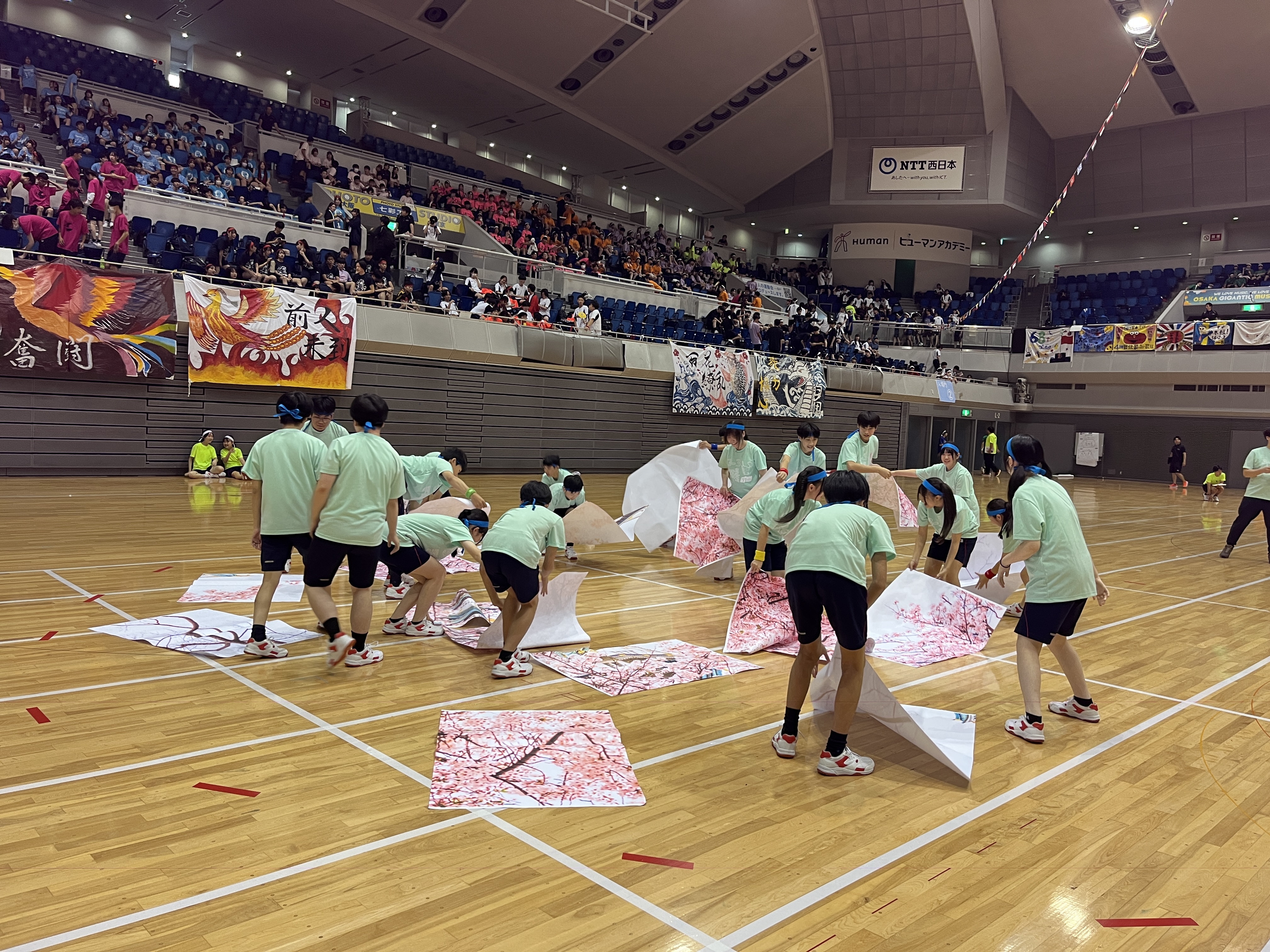 9/30(火)におおきにアリーナ舞洲で錦城体育祭が行われました。 中学3年生は、オープニングダンスを披露しました。 日々の練習の成果がでて、いい笑顔で踊り切りました。 また、学年競技のパズルや、クラスリレーなどの競技にも一生懸命に取り組みました。 中学生として最後の体育祭を楽しみました。 次は中間テストが控えています。頑張りましょう!!