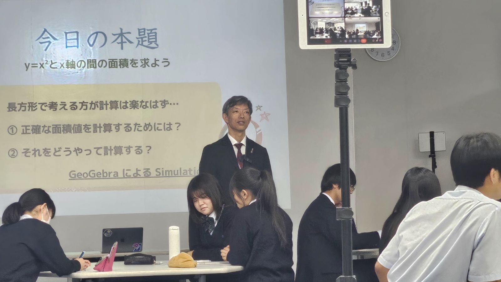 10月22日、「東京学芸大学先端教育人材育成推進機構 高校教育開発推進ユニット」の“高校探究プロジェクト”の一環として、本校の太田清司先生が高校2年6組で研究授業を行いました。テーマは「微分法と積分法」。高校数学の中でも難解な単元ですが、今回は「探究的な学びの推進」を目的とした実践でした。