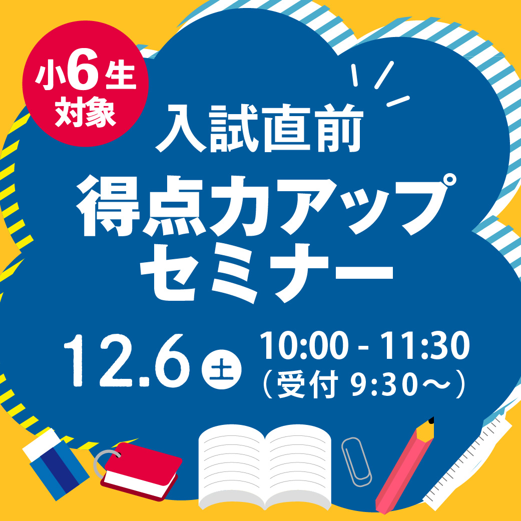 【今年度最後のイベント】12/6土 中学入試直前 得点力アップセミナー 申込受付中!
