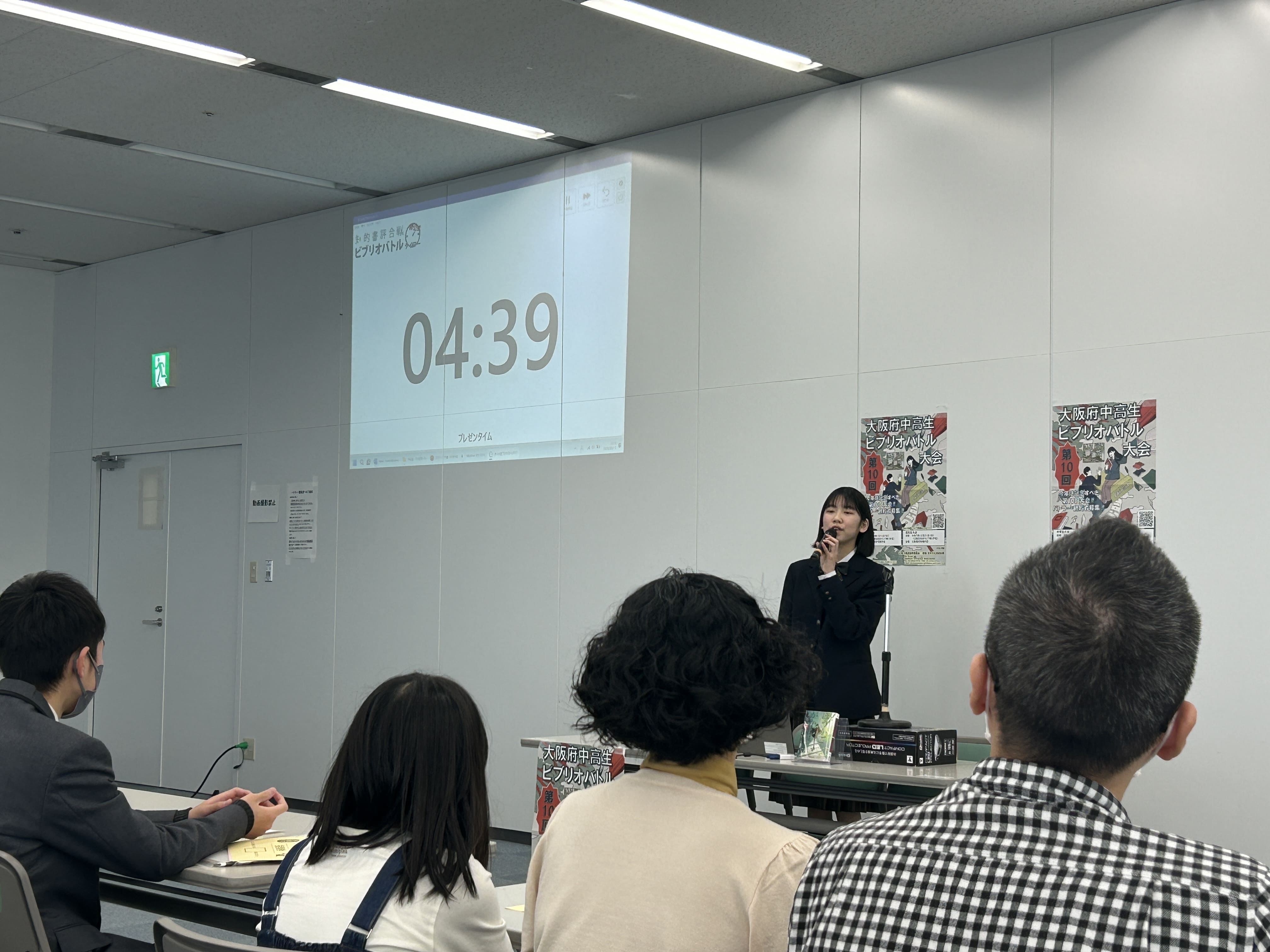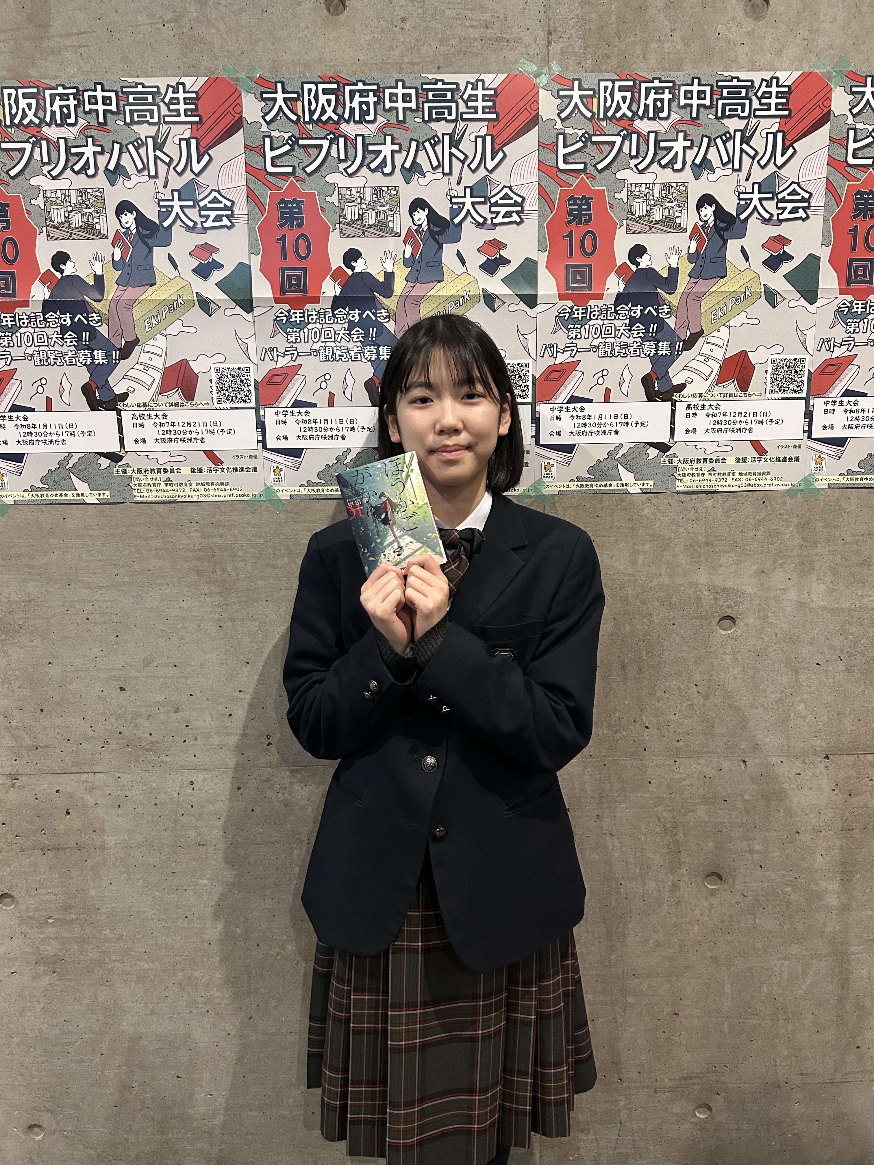 大阪府咲洲庁舎にて開催された「大阪府中高生ビブリオバトル」に、中学1年生水流さんが出場しました。 惜しくも入賞には届きませんでしたが、大きな舞台で自分の好きな本の魅力を精一杯伝えることができ、非常に貴重な経験となりました。また、他校の発表者の皆さんの熱のこもった紹介に触れ、読書の楽しさを再確認する一日となりました。