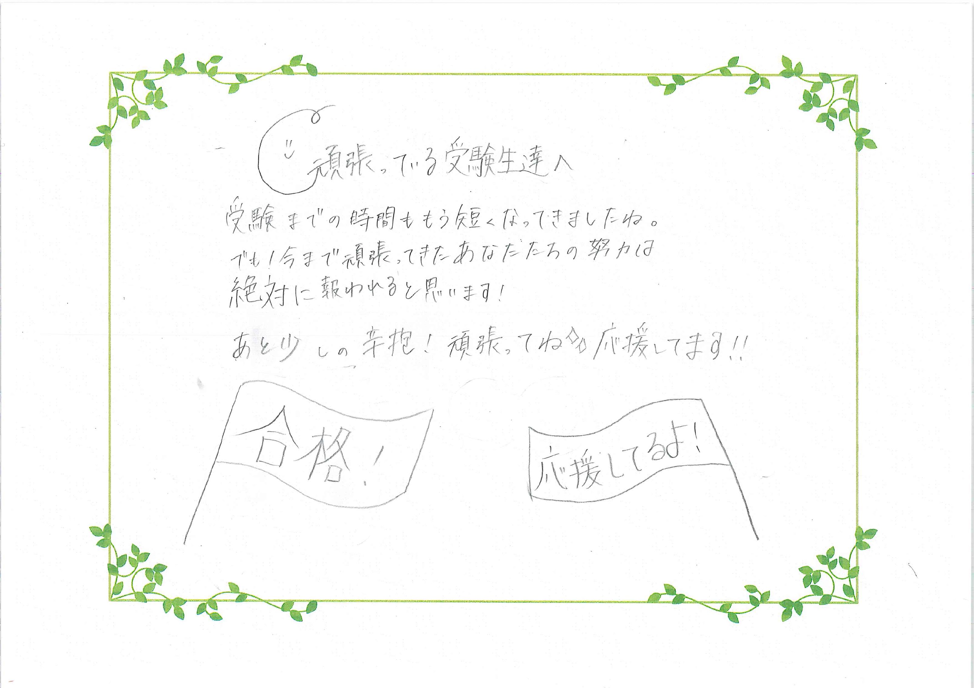 中学受験生の皆さん、応援メッセージを読んで引き続き受験勉強を頑張ってください。