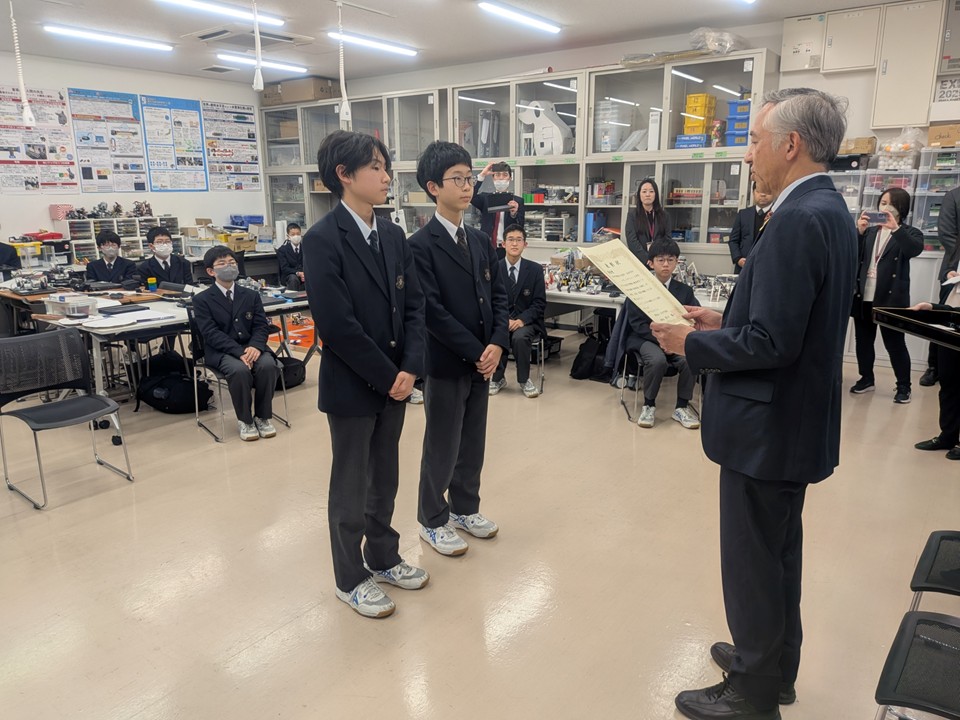 1月28日、ロボットサイエンス部の活動が評価され、追手門学院の学院生表彰を受賞しました。田口順一理事長より表彰状をいただき、さらなる活躍につなげるよう、激励のお言葉を頂戴しました。つねに自己進化することを胸にこれらかも頑張ります。引き続き応援お願いします。