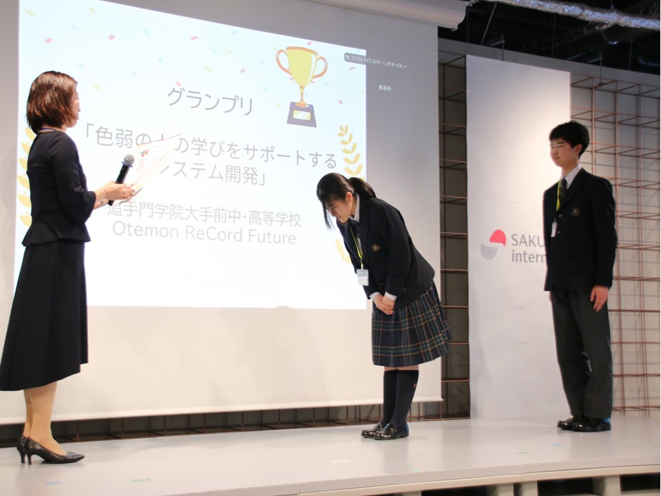 今回、私たちは色弱の人の学びをサポートするアプリ開発に取り組み、「グッドアクション賞」、そして「グランプリ」を受賞しました。これまで続けてきた活動が評価されたことを大変嬉しく思います。受賞をきっかけに活動をさらに広げ、将来は全国の学校で私たちの開発した“色弱の人の学びをサポートするシステム”が活用され、誰もが平等に質の高い教育を受けられる社会の実現につなげていきたいです。また、他の参加者との交流を通して多くの刺激を受けたことも、大きな学びとなりました。私自身は3月に引退しますが、最後の大会でこのような賞をいただけたことを誇りに思います。これまで、私たちの色弱の人の学びをサポートするシステム開発を支えてくださっていた皆様、有難うございました。