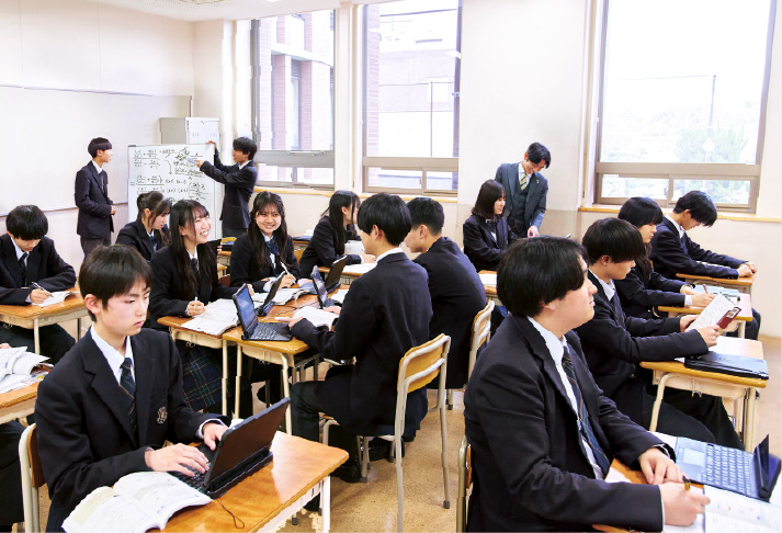 一人ひとりの習熟度と目的に合わせて生徒自らが学び方を選ぶ「個別最適な学び」で学力を定着。現代社会が持つ課題を深く考え探究する「プロジェクト型の学び」を通じ、知識の活用だけでなく、思考力や判断力といった新しい時代に必要な力を育てます。