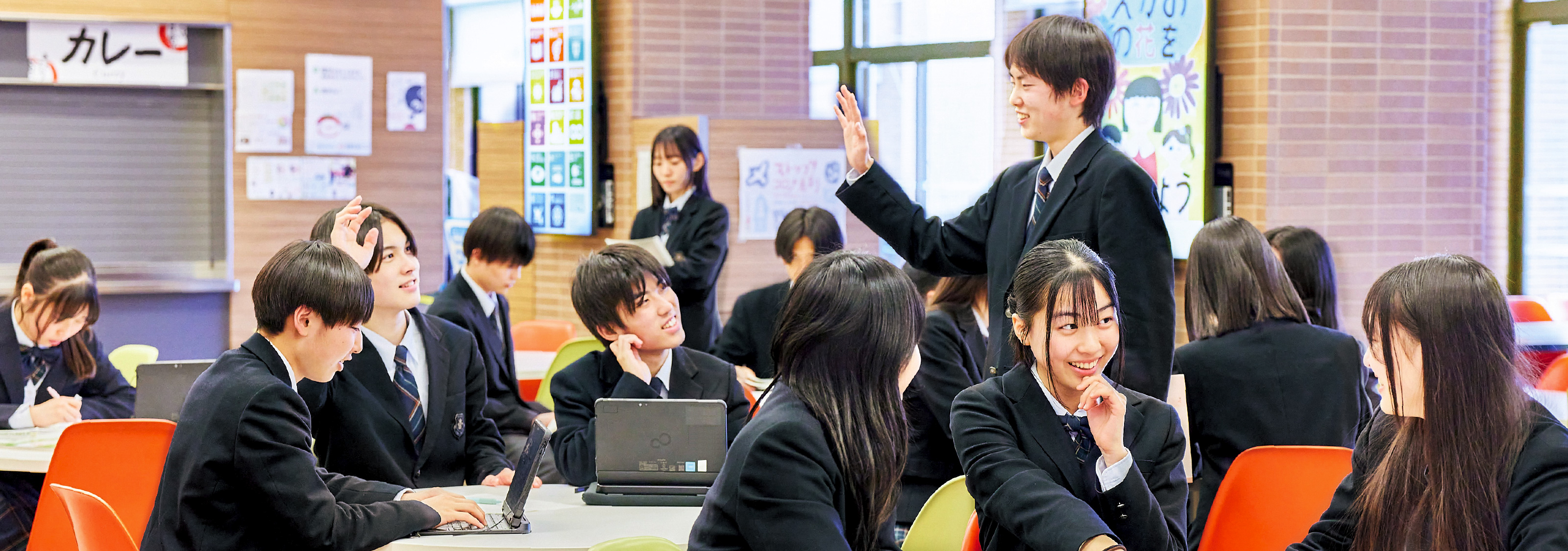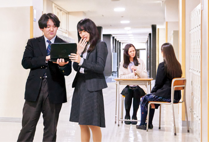 すべての学年・コースの生徒たちがフラットに交流しながら互いを尊重し、学校生活を送ります。