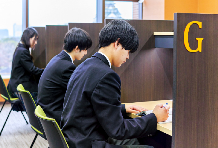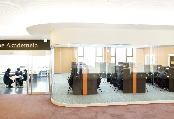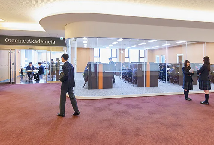 専任のチューターも在籍する校内自習室「Otemae Akademeia」をはじめ、「カフェテリア」「図書室」など、気分に合わせて学習環境を選ぶことが可能。多くの生徒が自習室を活用しており、規則的な学習習慣を身につけ、効率的に学力を伸ばしています。