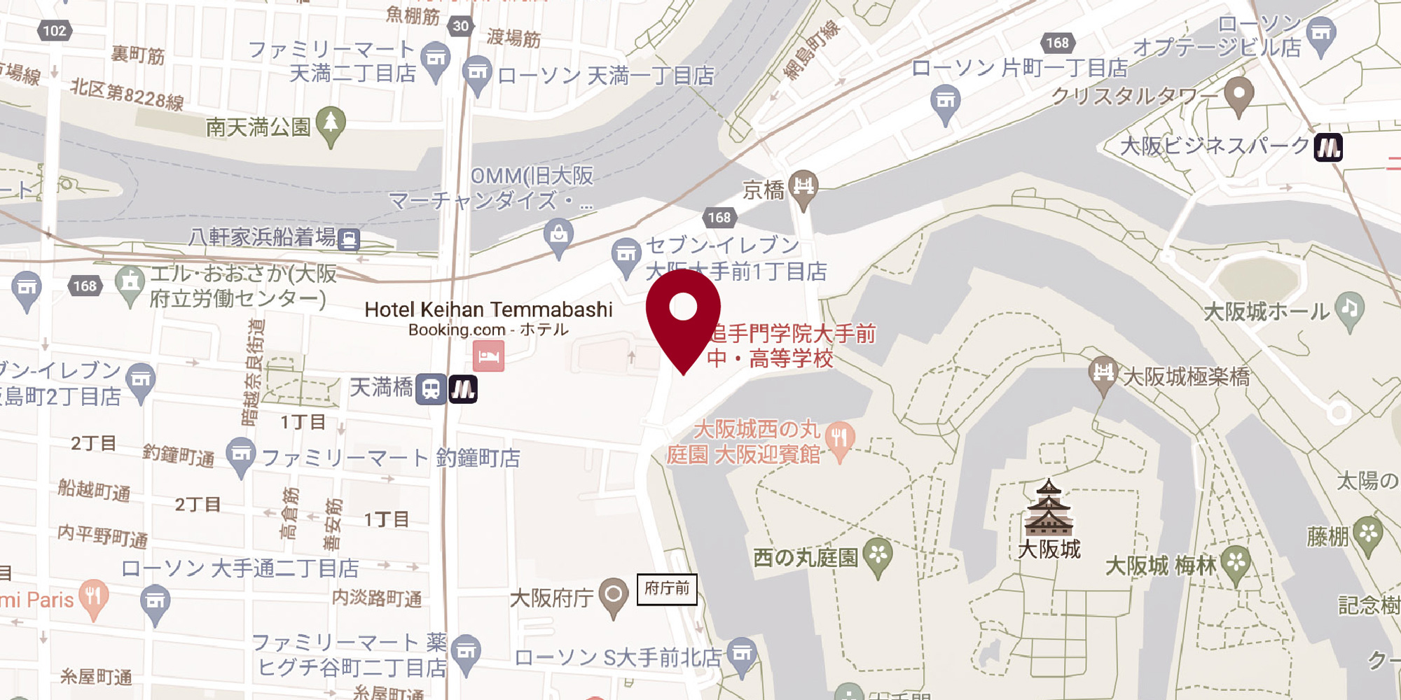 京阪電車「天満橋」駅下車、14番出口より徒歩約5分