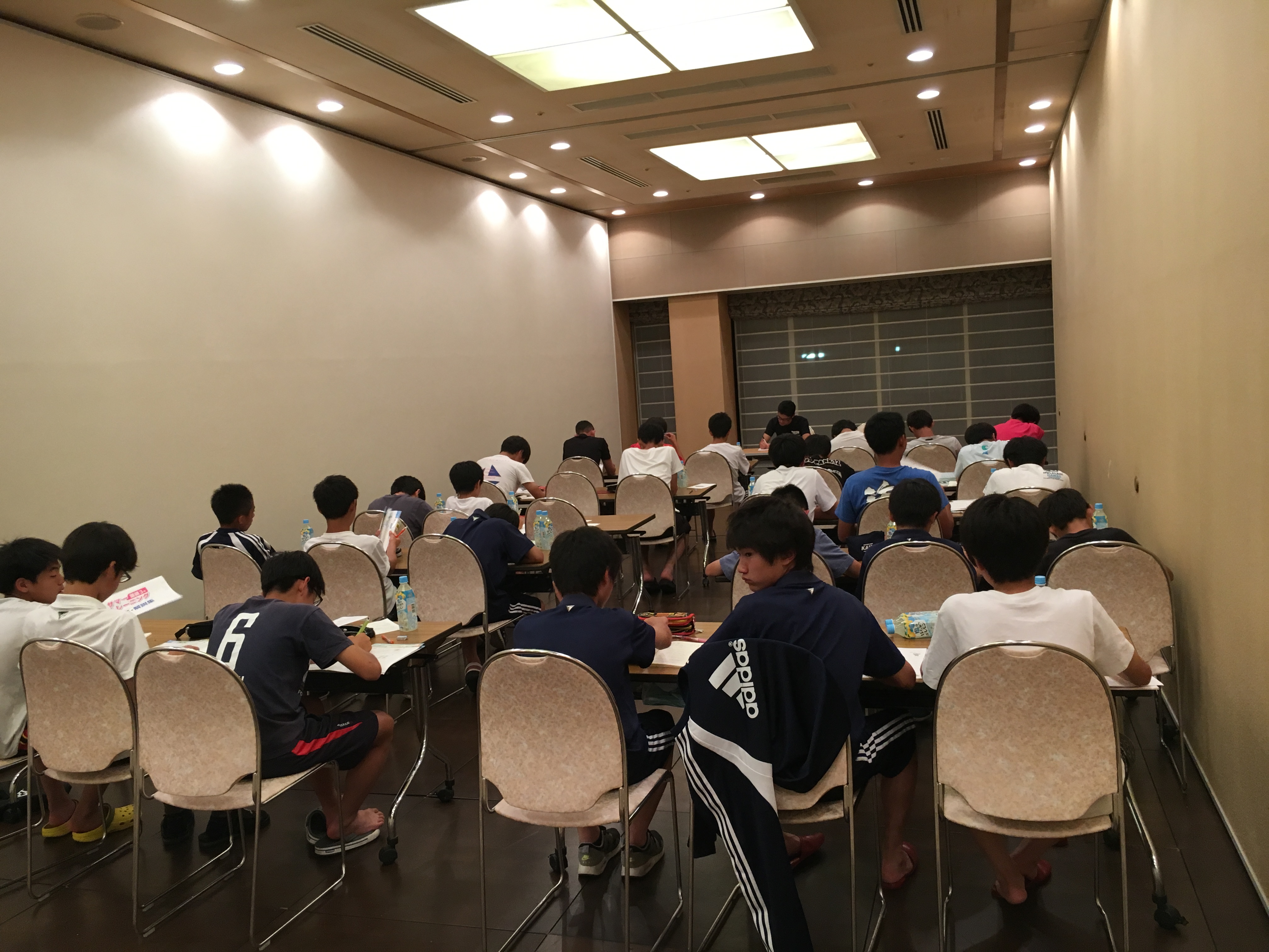 4日目の夜も恒例の学習及びミーティングを行いました。疲労が蓄積された中でも、生徒たちは一生懸命単語を覚えたり、問題を解いたりしていました。合宿が終わっても、このような習慣を持って欲しいです。ミーティングでは今日の試合について、思ったことや感じたことなどを共有しました。いよいよ明日の夕方には大阪へ向かいます。少しでも多くのことを経験し、成長して欲しいです。