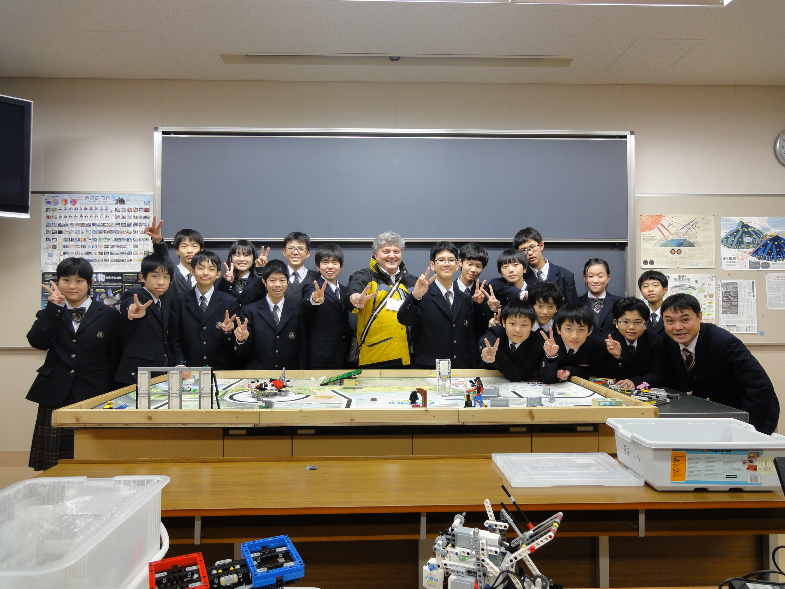 最初に中学3年3組の教室を訪れ、シリアの現状や平和の尊さについてお話しいただきました。次にロボットサイエンス部が、日頃おこなっている活動について紹介しました。アハマド先生からは、センサーの有効性やロボットスピリットについてご教授いただきました。