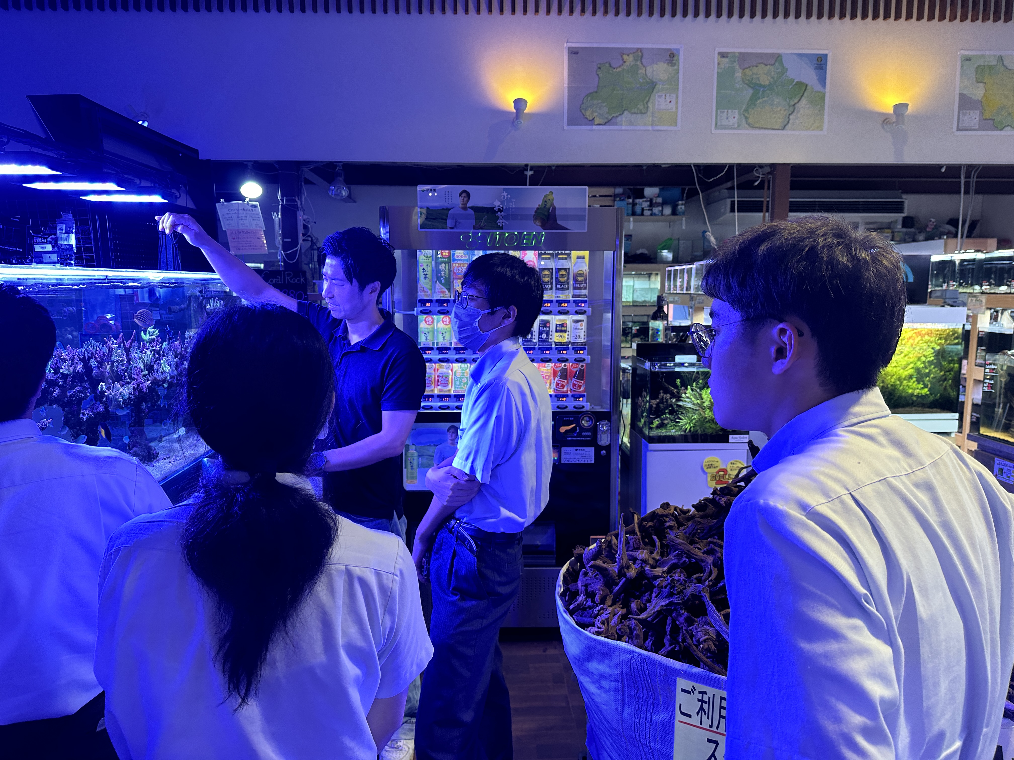 8月9日(金)の活動では、サンゴの飼育環境を学ぶため、アクアテイラーズさんの本店に行かせていただきました。