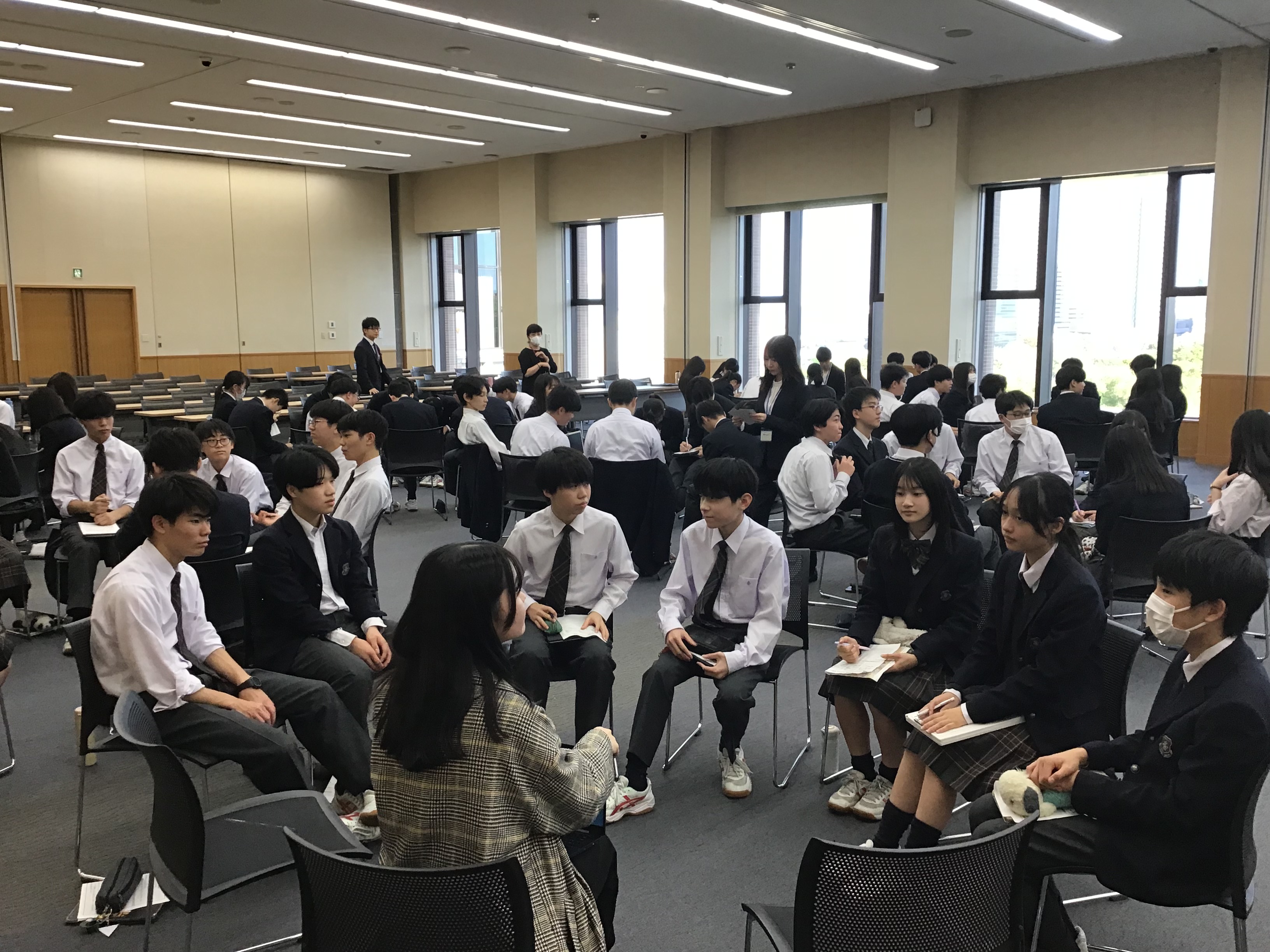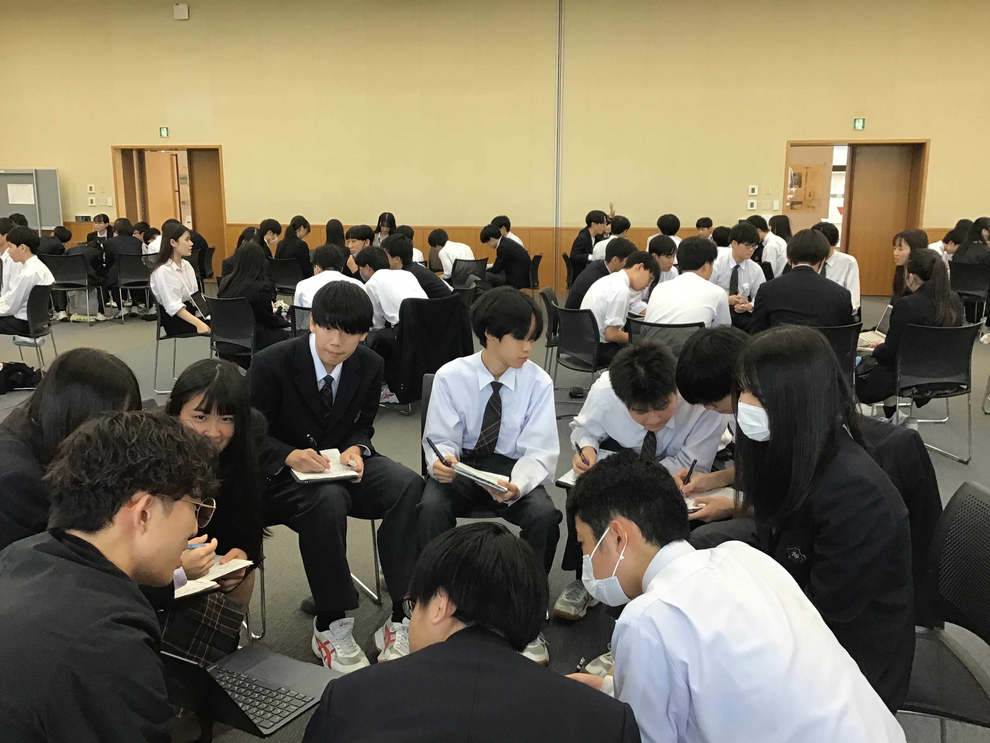 11月10日(月)5,6限目にトモノカイとの合同進路HR、大学体感プログラムを実施しました。 大学生活についてのクイズ大会で盛り上がってから、メンターさん(大学生)が1グループに1人ついて、進路選択や大学生活の様子などをお話していただきました。 最後には未来の自分へのメッセージを書き、学年末終了後に自分に返ってきます。年の近い大学生だからこそ興味もわき、たいへん熱心に話を聞いていました。 今後の進路の選択に生かしてほしいと思います。