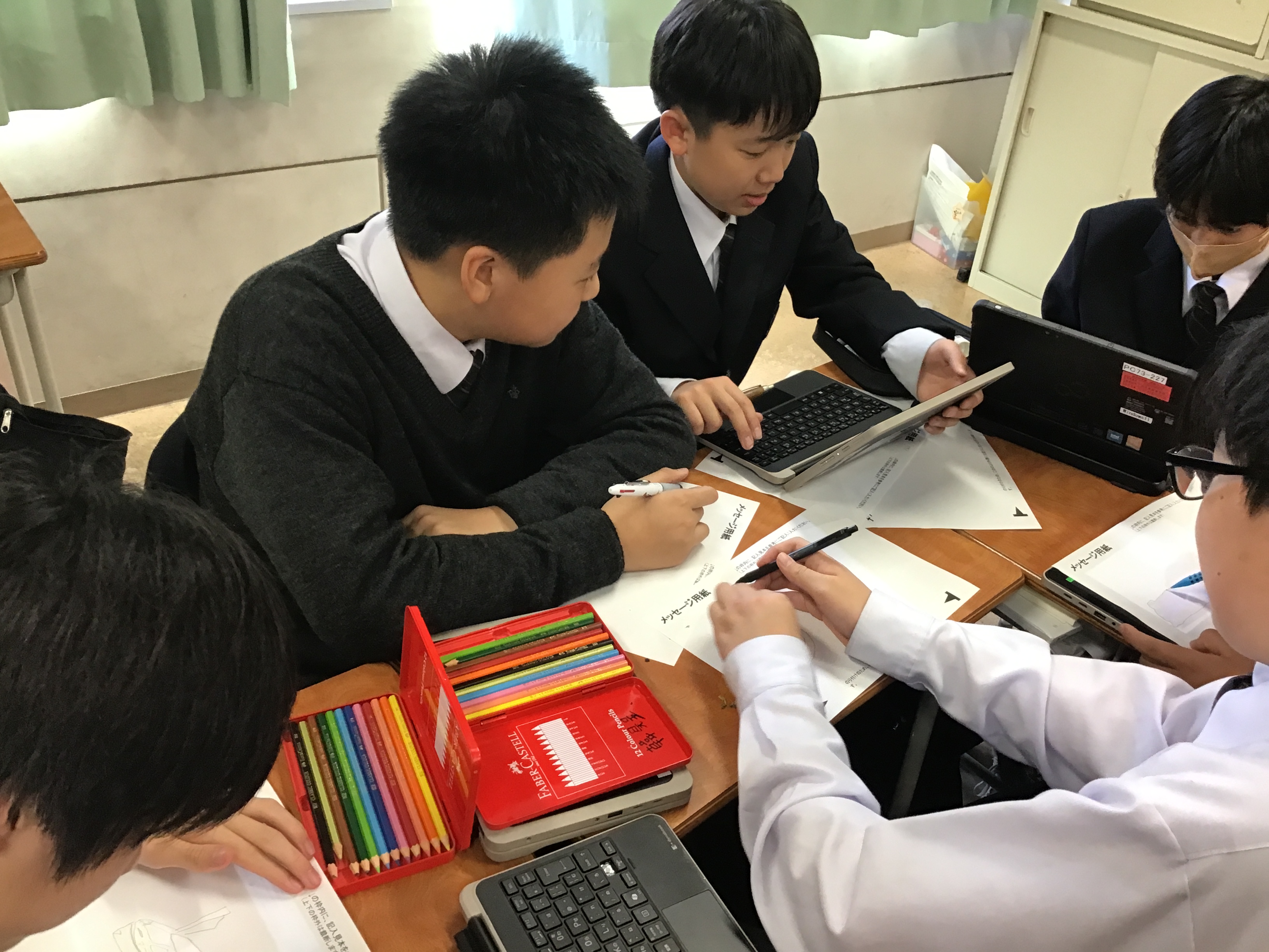 12月13日(土)に追手門学院大学の学生団体が主催する「追大Candle Night」に、本校の中学1年生もメッセージキャンドルの展示で参加することになりました。 この企画に際し、本日のLHRの時間を利用し、将来の夢や、日頃伝えられないおうちの方への感謝の気持ちをメッセージ用紙に綴りました。