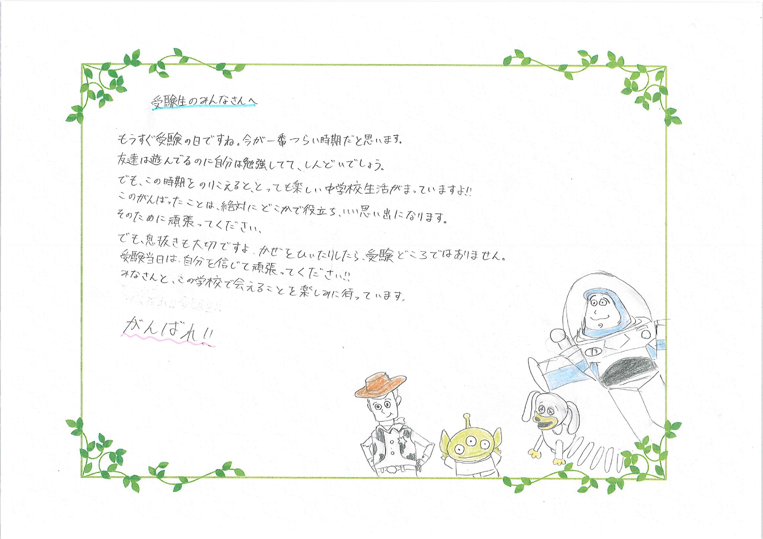 中学受験生の皆さん、応援メッセージを読んで引き続き受験勉強を頑張ってください。