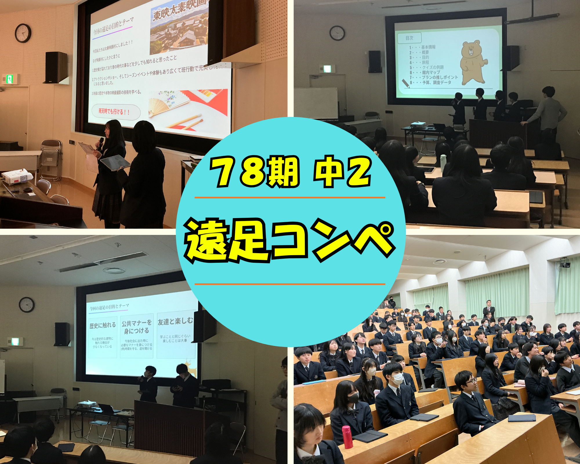 LHRの時間に来年度の遠足先を決めるためのコンペを開催しました。生徒たちは有志で集まり、遠足を楽しんでもらえるよう冬休み前から企画を進めてくれました。発表してくれたみなさん、本当にありがとうございました!結果発表をお楽しみに!