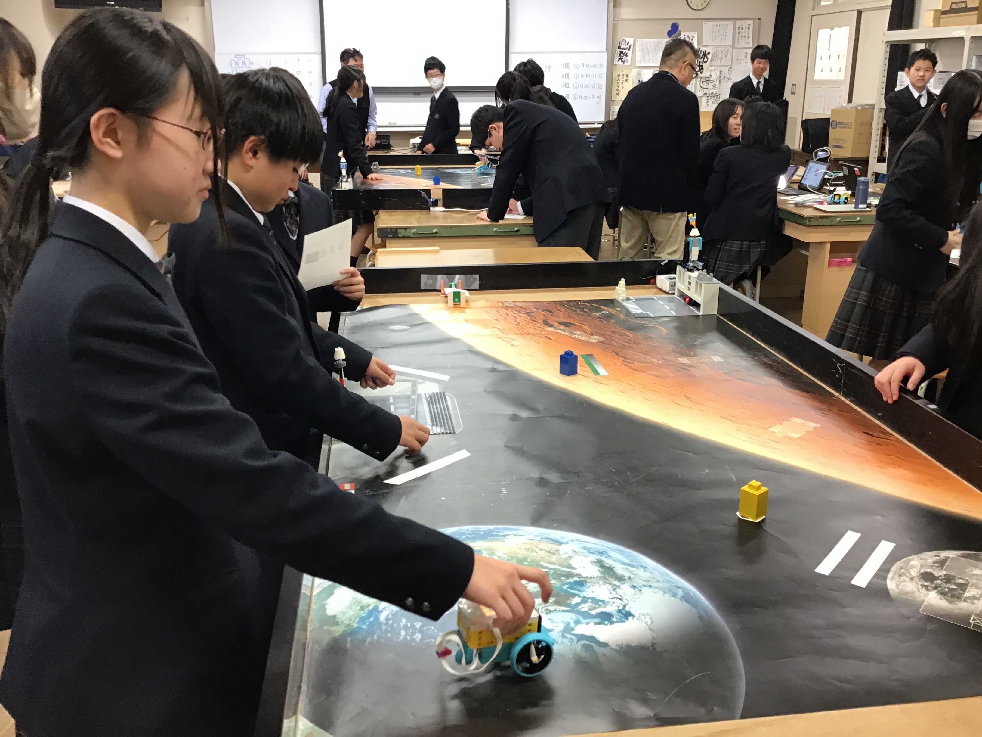 プログラミングでロボットを動かし、火星探査をしよう!をテーマに2人1組になり、スパイクというロボットを使い、8つのミッションに挑戦しました。