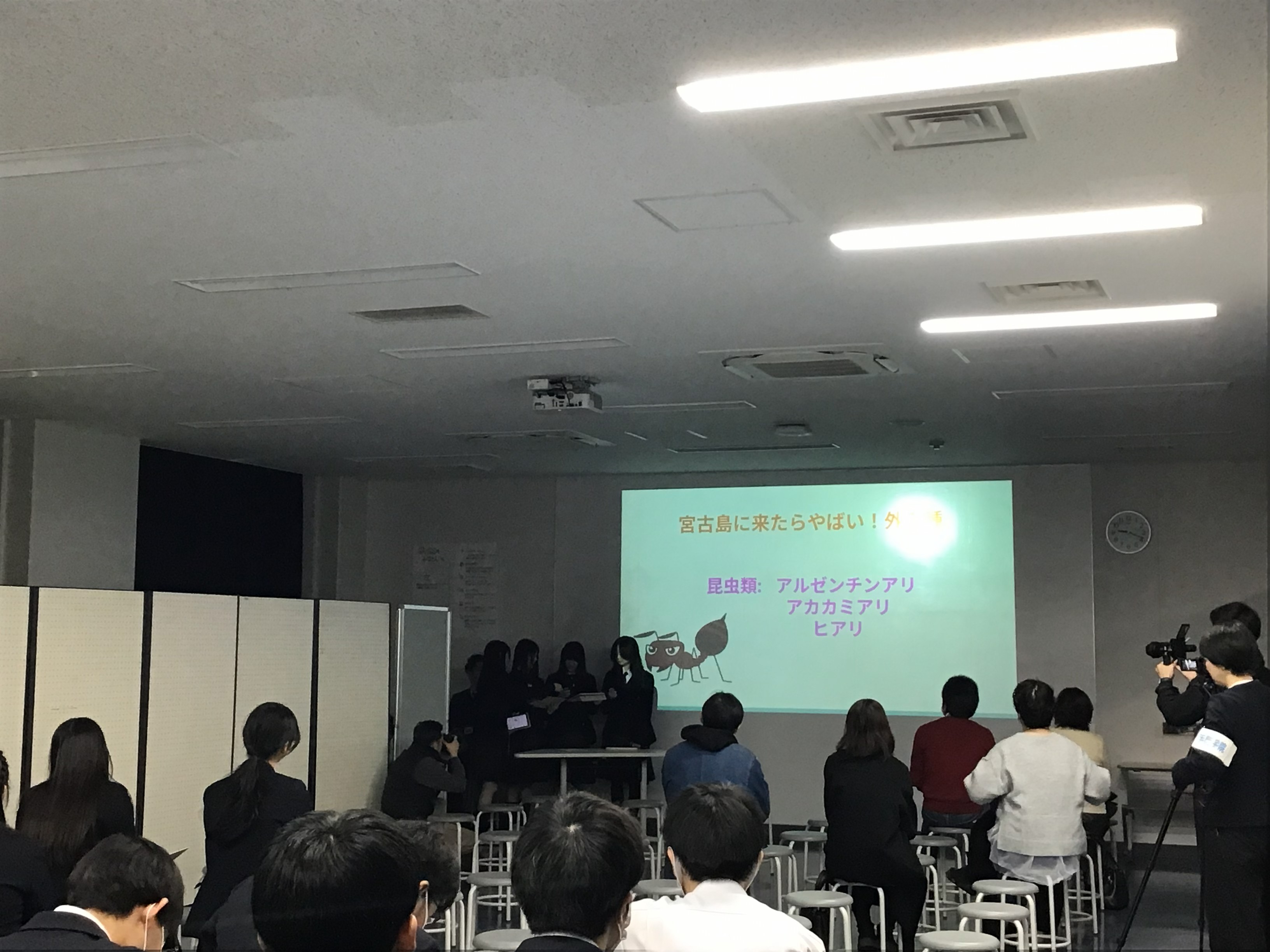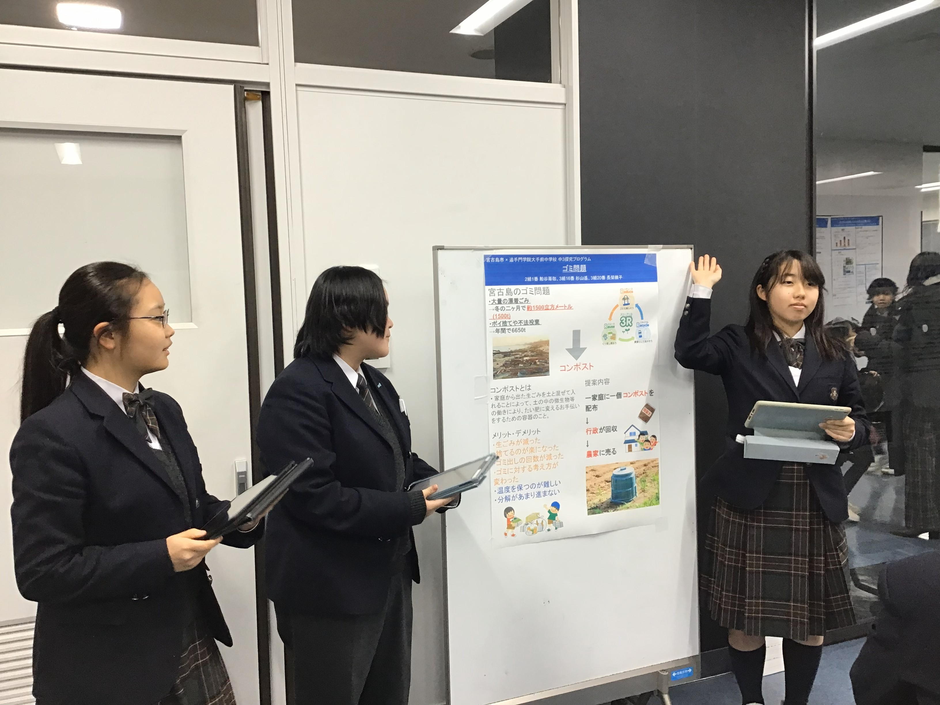 中学3年生は、探究旅行に向けて取り組んできた学習の成果として、宮古島の環境問題をはじめとするさまざまな課題について、これまでの探究内容を改めて発表しました。