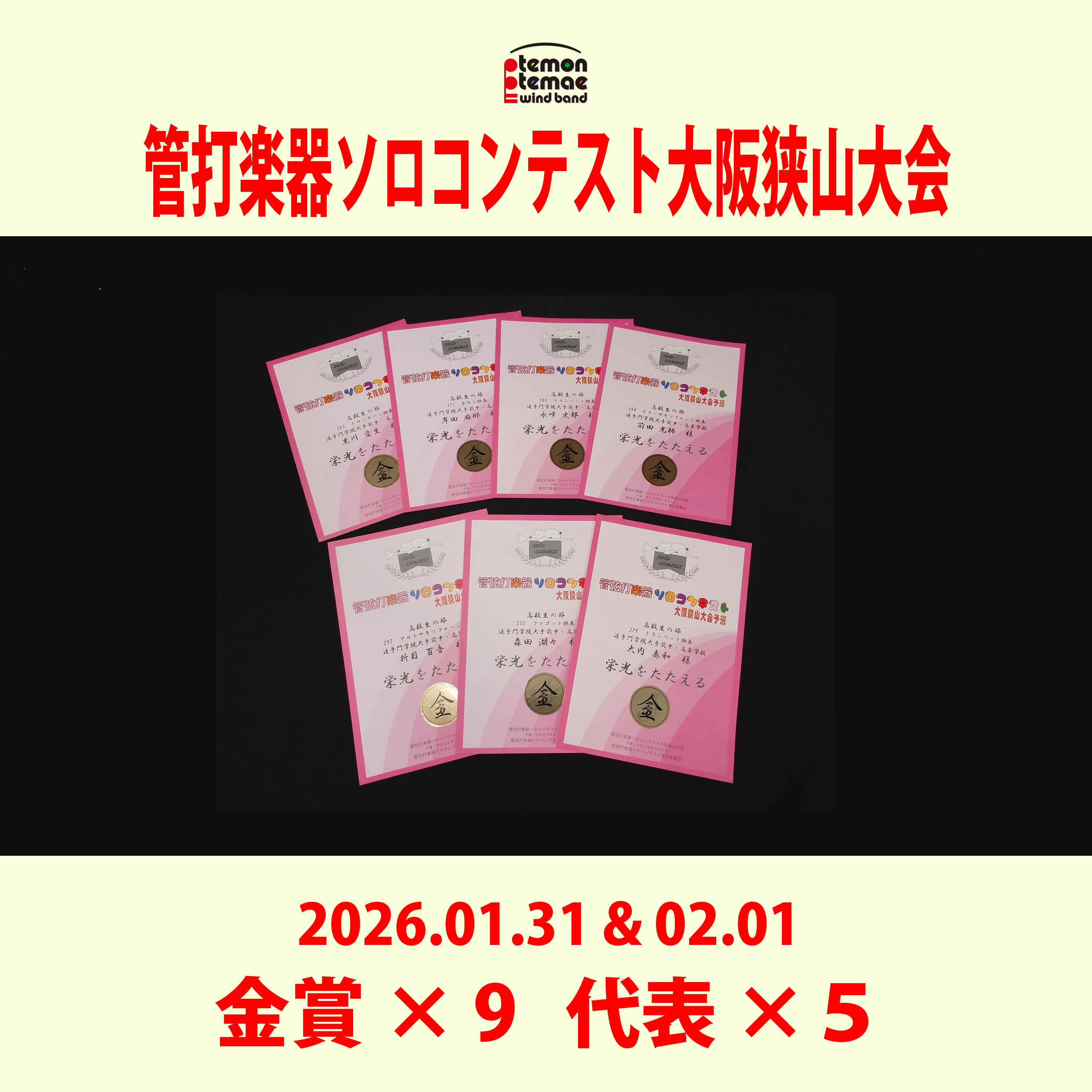 管打楽器ソロコンテスト大阪狭山大会(予選)金賞×9!