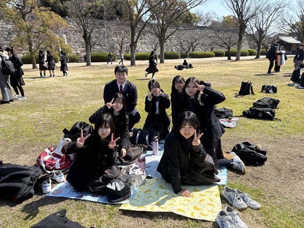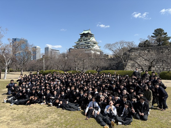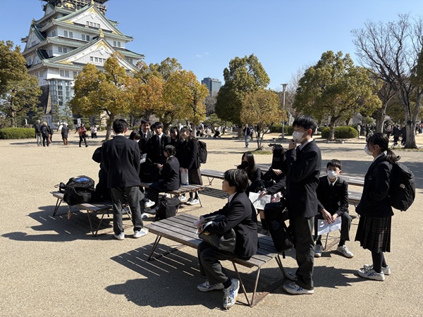 中学1・2年生合同で「大阪城ミステリーツアー」を実施しました。 班ごとに協力しながら大阪城内を巡り、各ポイントで待っている先生・生徒から出されるミッションに挑戦しました。仲間と相談しながら課題をクリアし、学年を越えて交流を深めることができました。 最後は西の丸庭園に集合し、みんなで昼食をとりました。天候にも恵まれ、笑顔あふれる充実した一日となりました