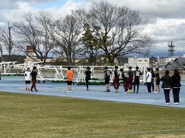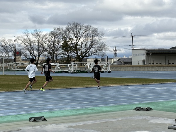 到着後、まずは全員でグラウンドの準備とウォーミングアップを行い、午後から本格的な練習に入りました。 本日は基礎体力向上のための走り込み、各ブロックに分かれての専門的な技術練習を中心に行いました。 普段とは違う環境や気候のなかで、部員たちは互いに声を掛け合い、切磋琢磨しながら限界に挑戦しています。厳しいメニューもありましたが、最後まで集中力を切らすことなく取り組む姿勢が見られました。