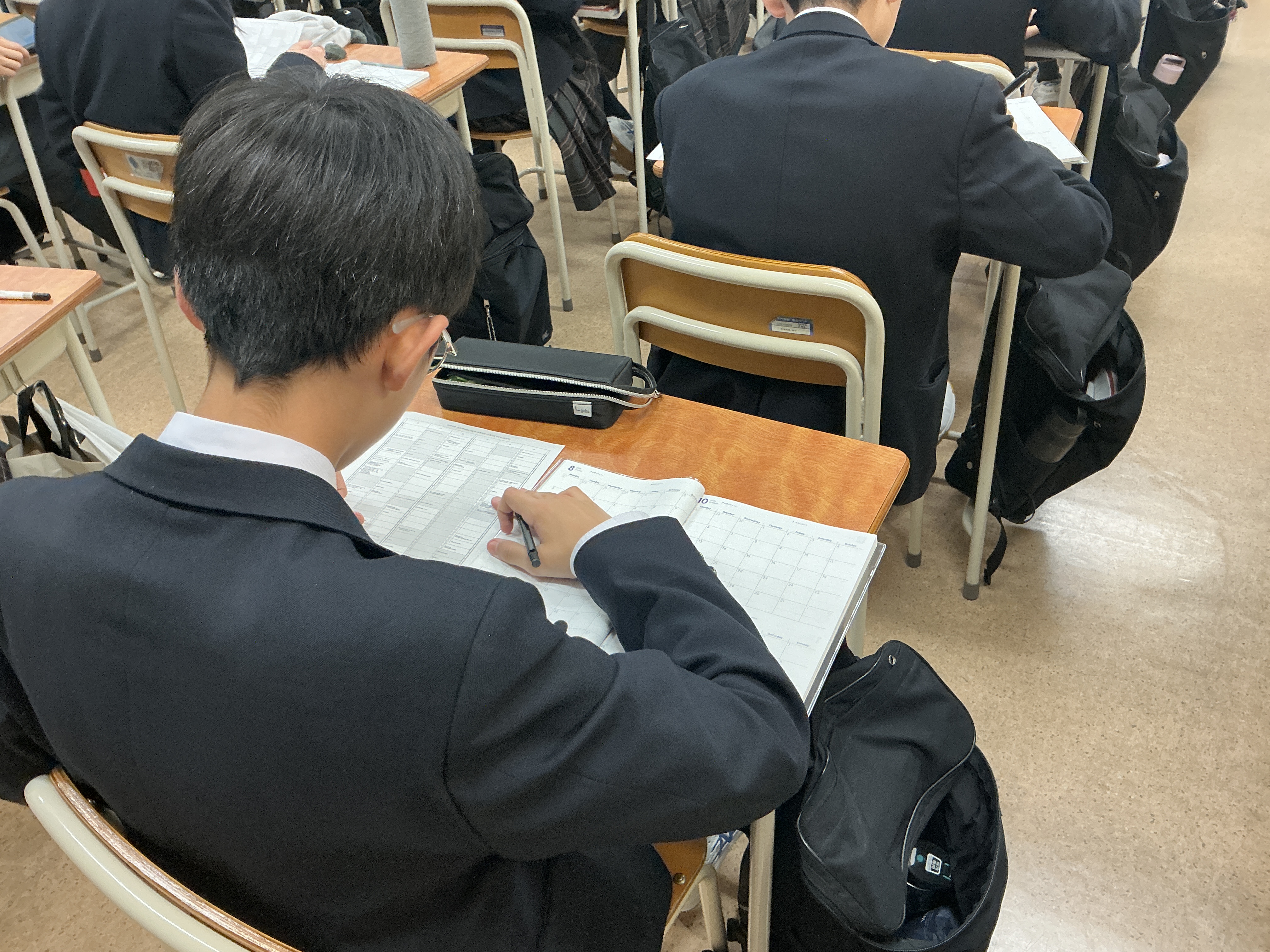 また、今年度からは自分自身で予定を管理する力を育むことを目的として、手帳「Foresight」を活用しています。生徒たちは日々のスケジュールや目標を書き込み、先を見通して行動することを意識しながら学校生活を送っています。
