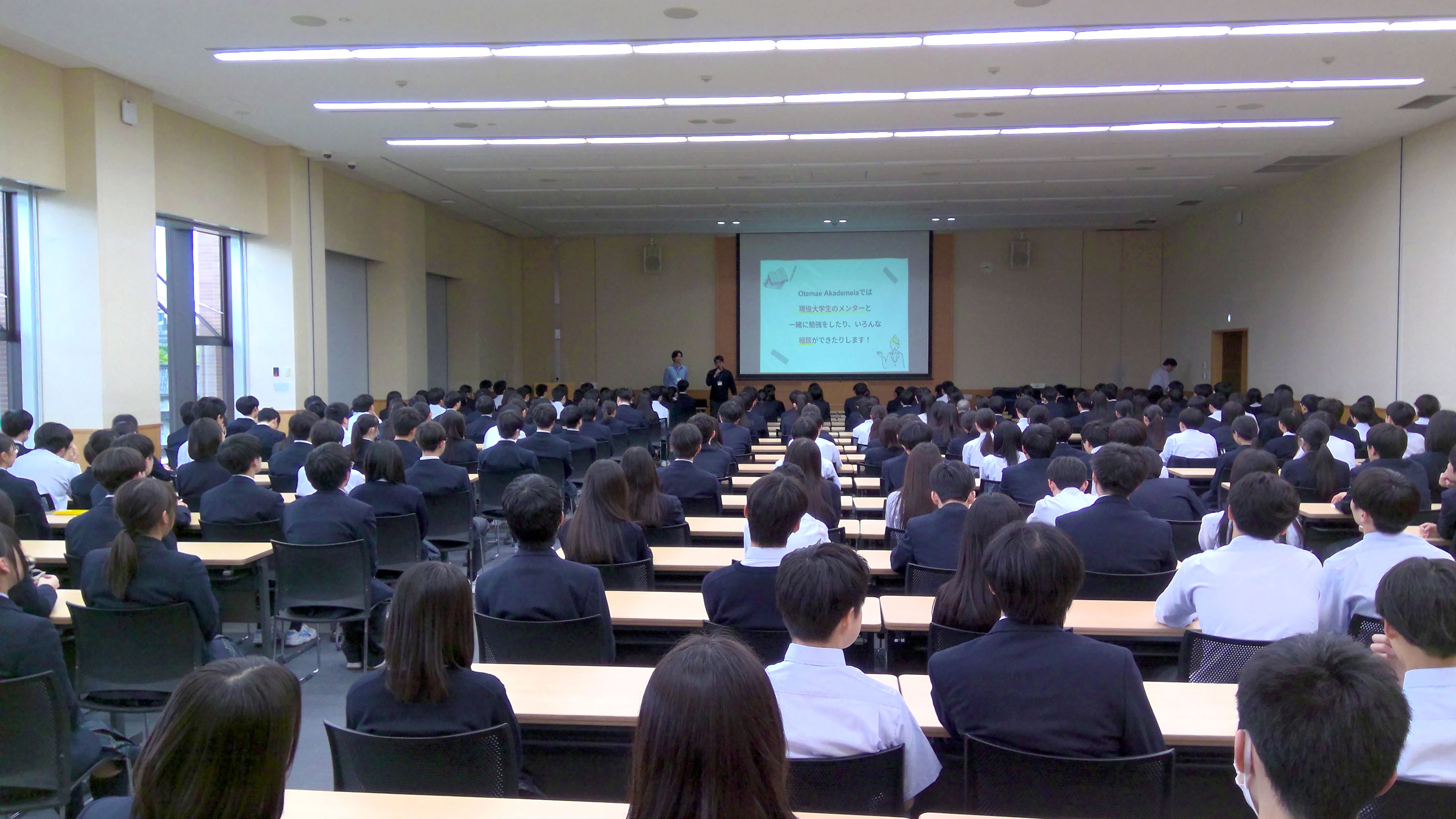本日、終礼の時間を活用し、高校1年生を対象とした自習室利用説明会を大手前ホールにて実施しました。